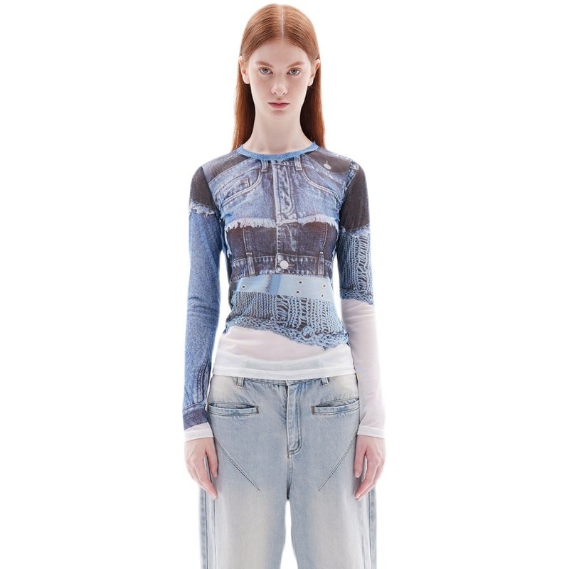 HAI3 Печатная сетчатая рубашка для нижней рубашки*сетка, базовая рубашка