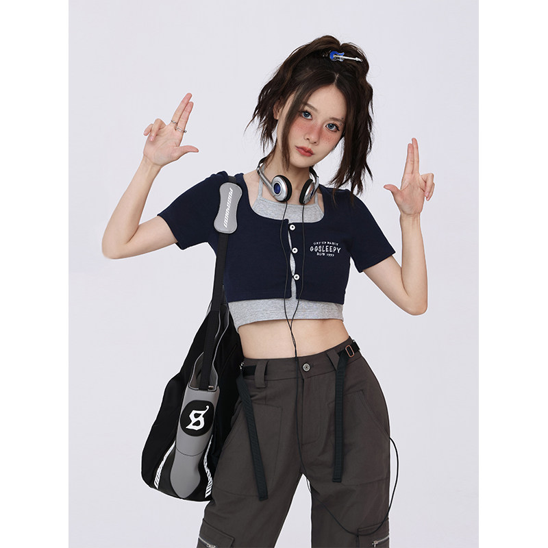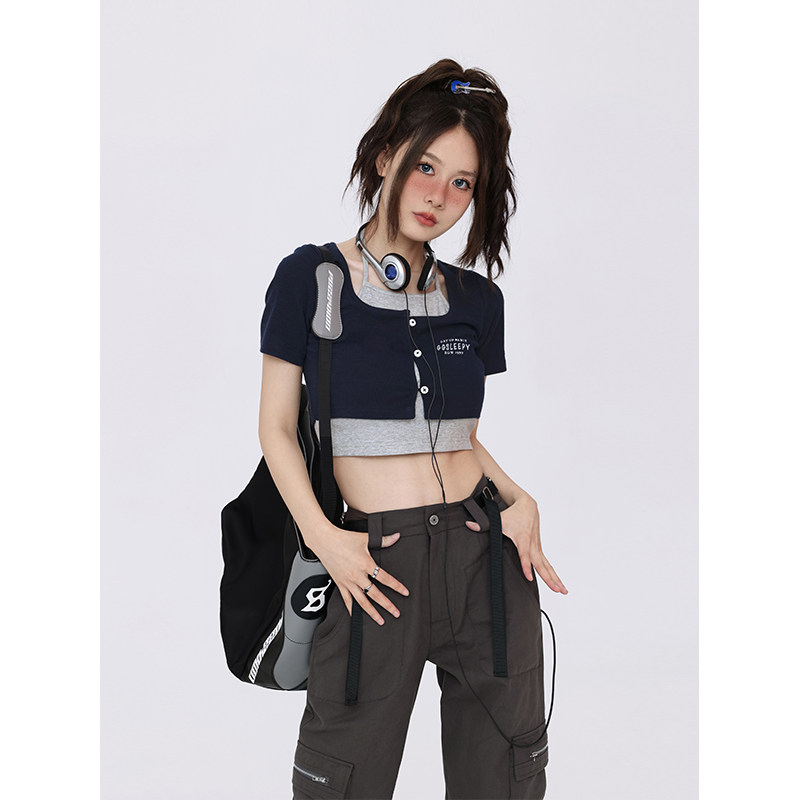 GeGe Sleepy Комплект, универсальная футболка с коротким рукавом, майка, в американском стиле, по фигуре