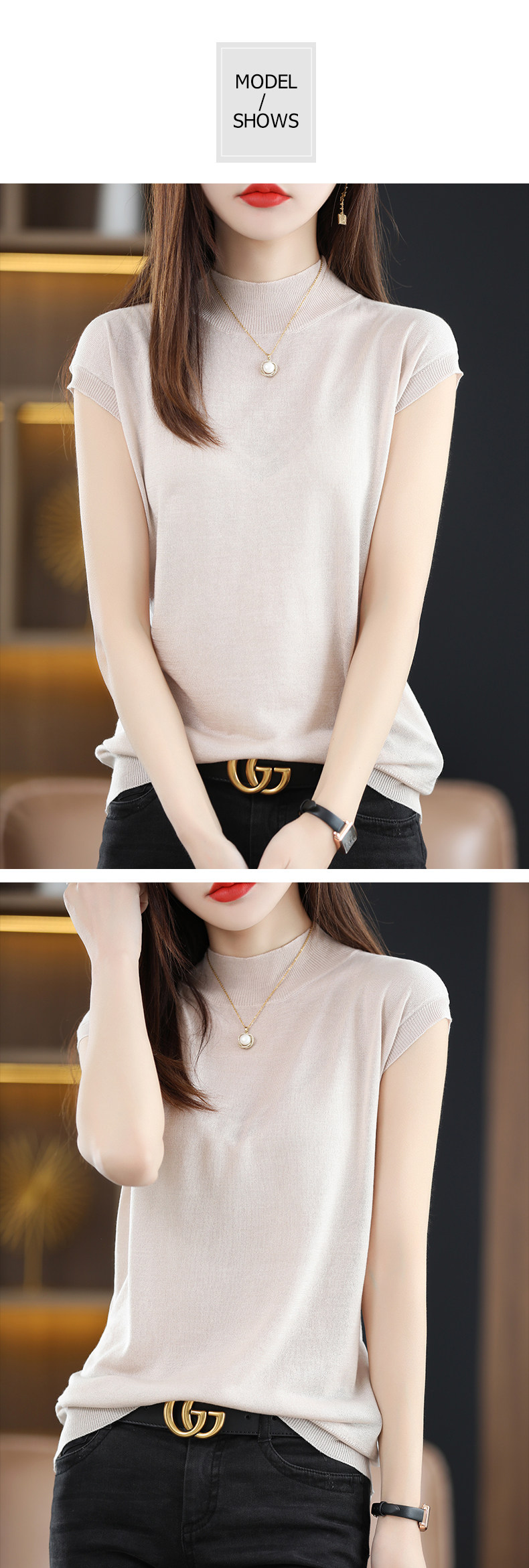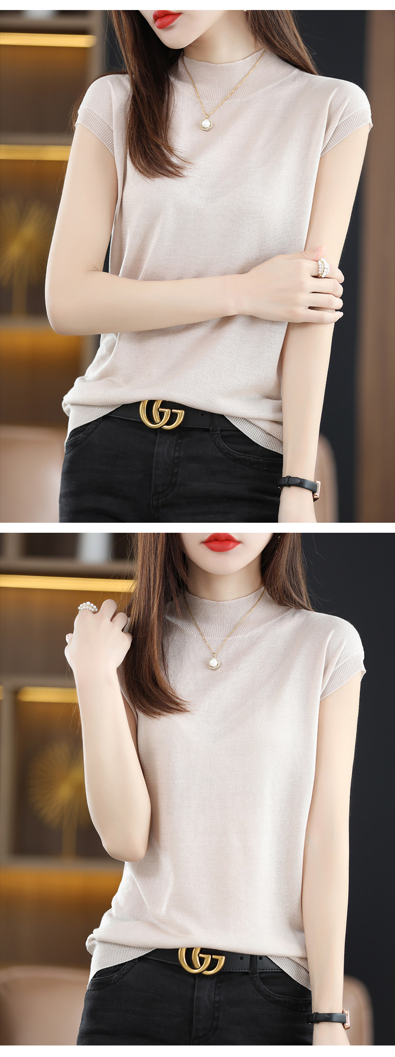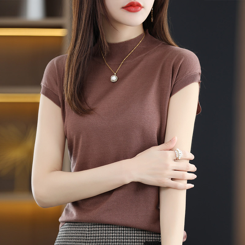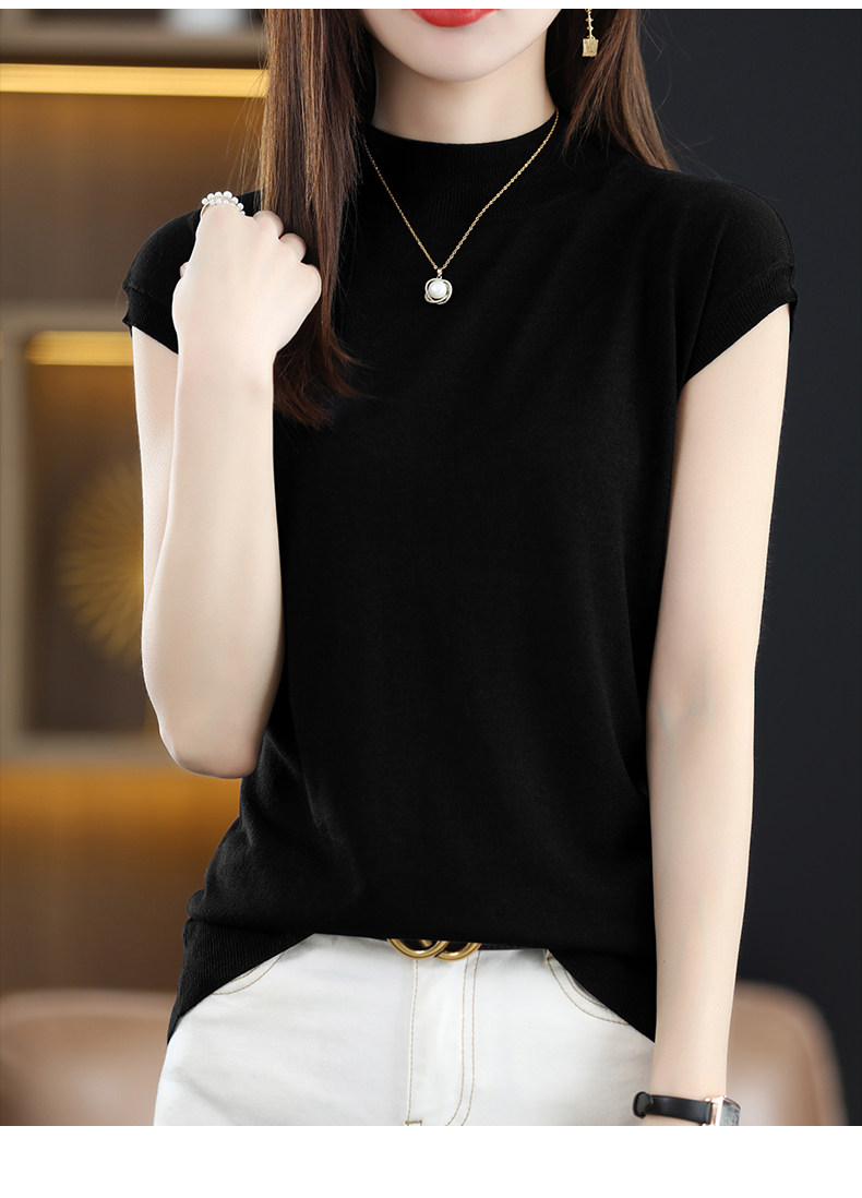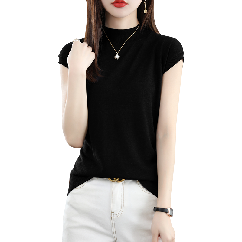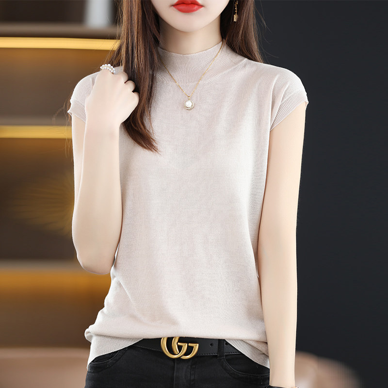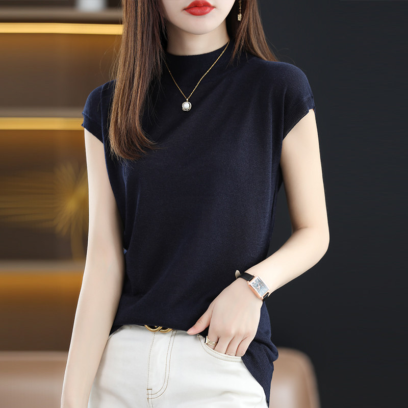 Летняя базовая приятная телу майка топ без рукавов, тонкий трикотажный шелковый свитер, высокий воротник