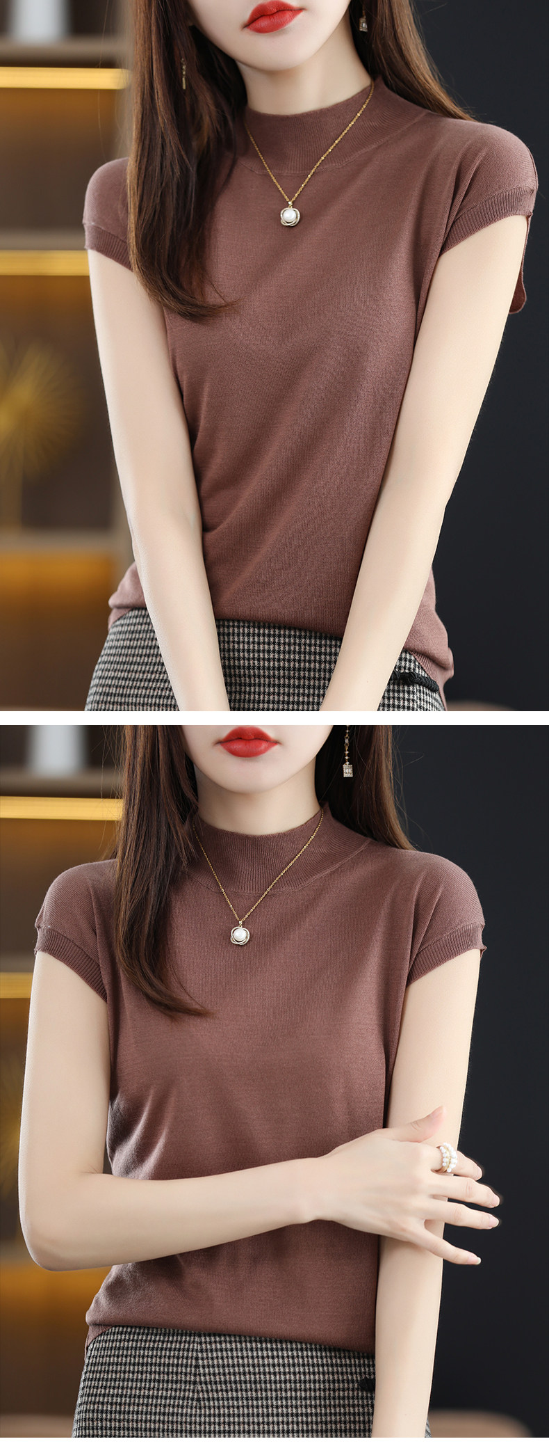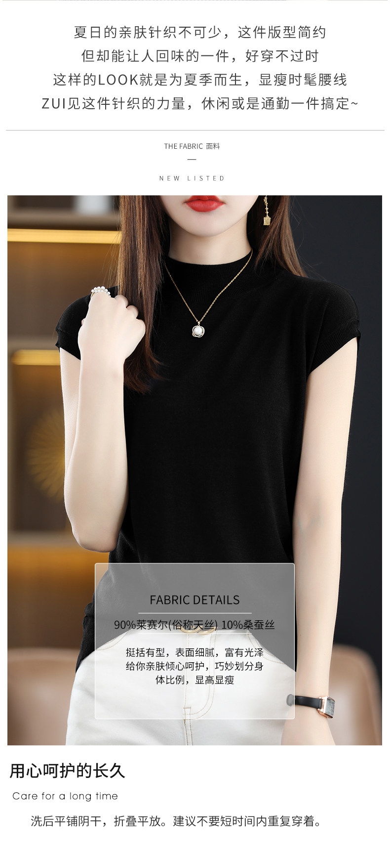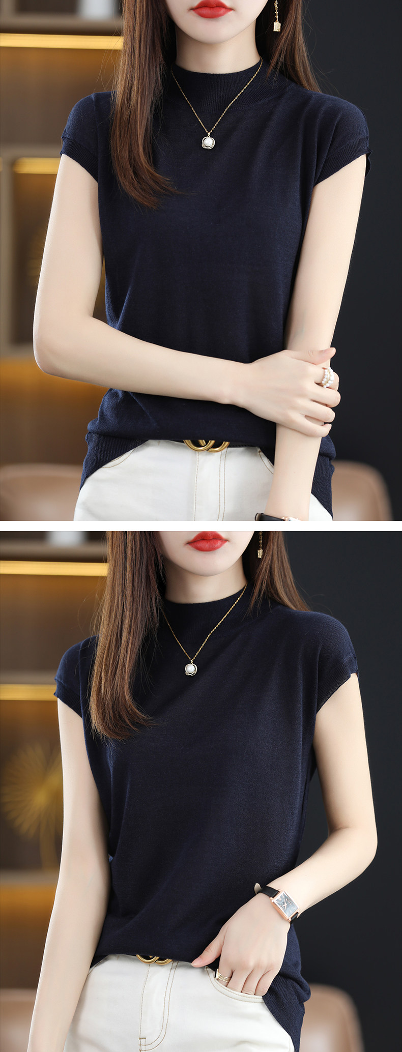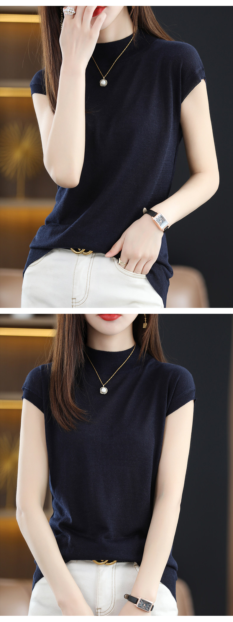 Летняя базовая приятная телу майка топ без рукавов, тонкий трикотажный шелковый свитер, высокий воротник