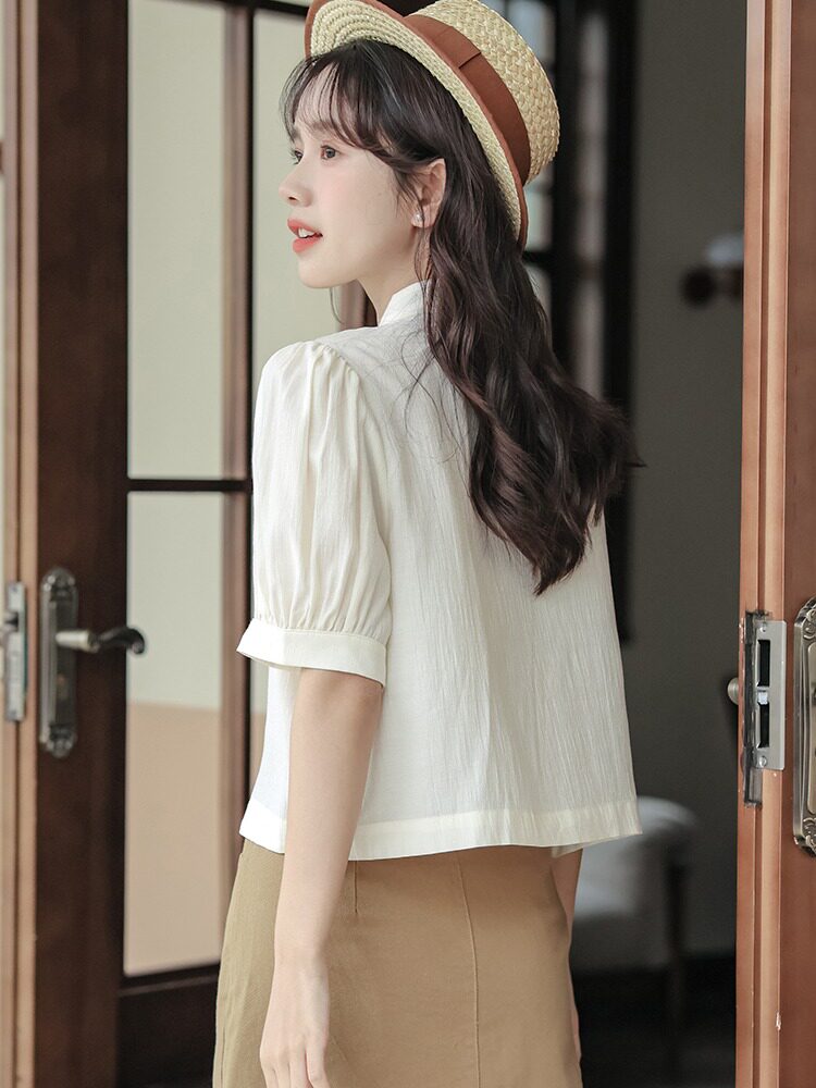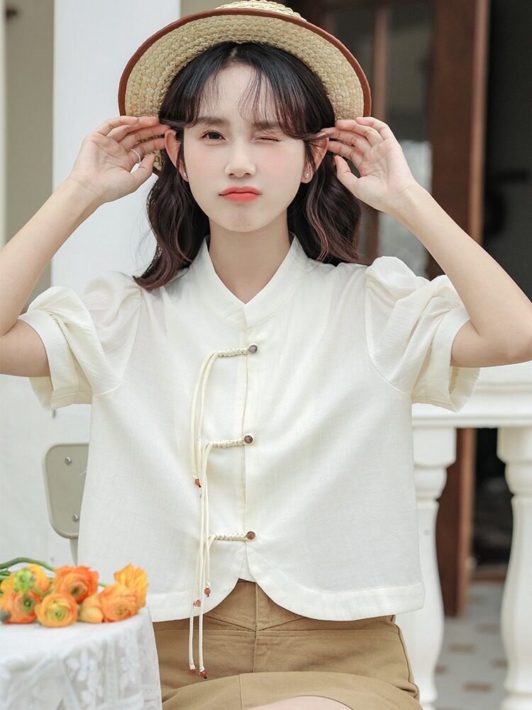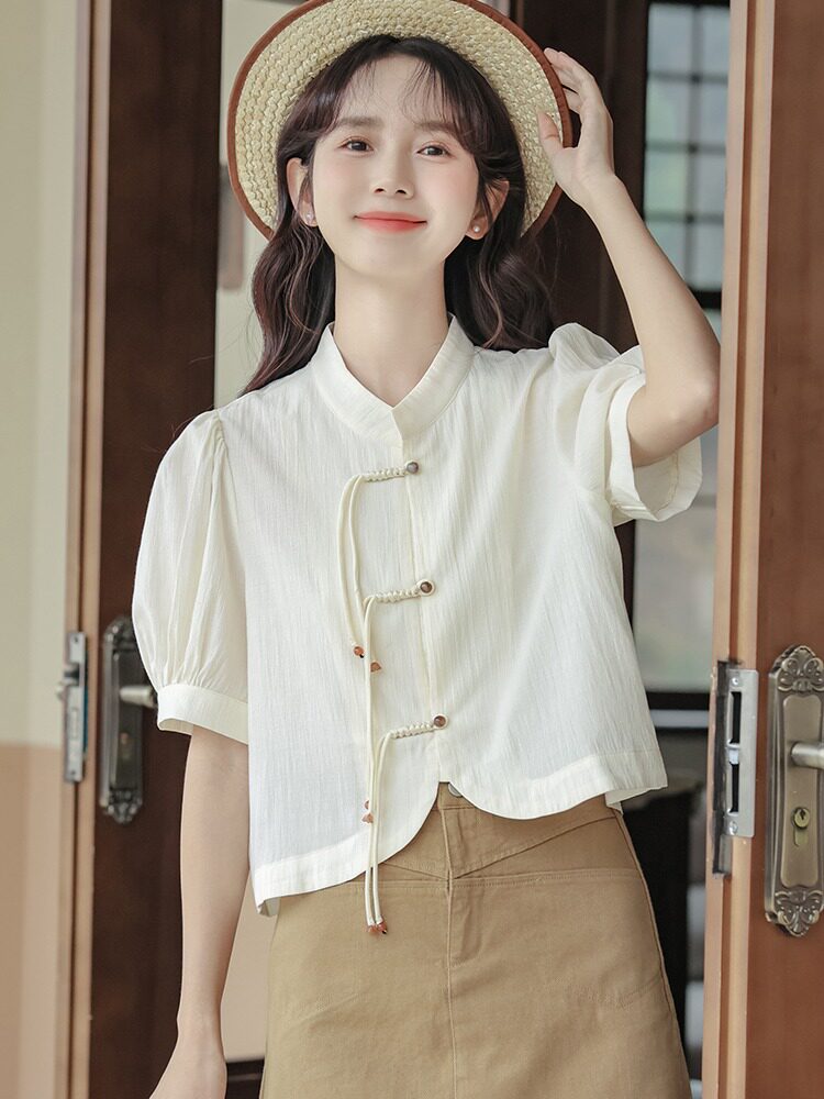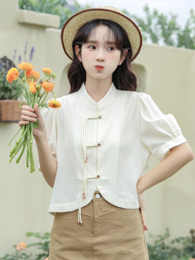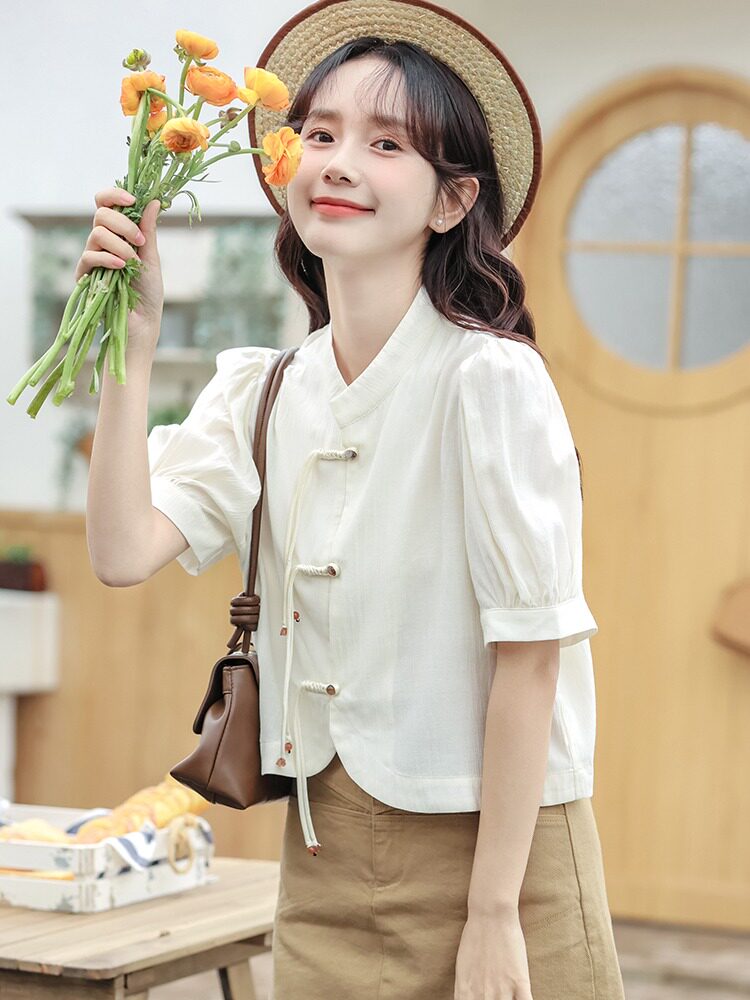 Ретро летняя милая рубашка для отдыха, китайский стиль, короткий рукав