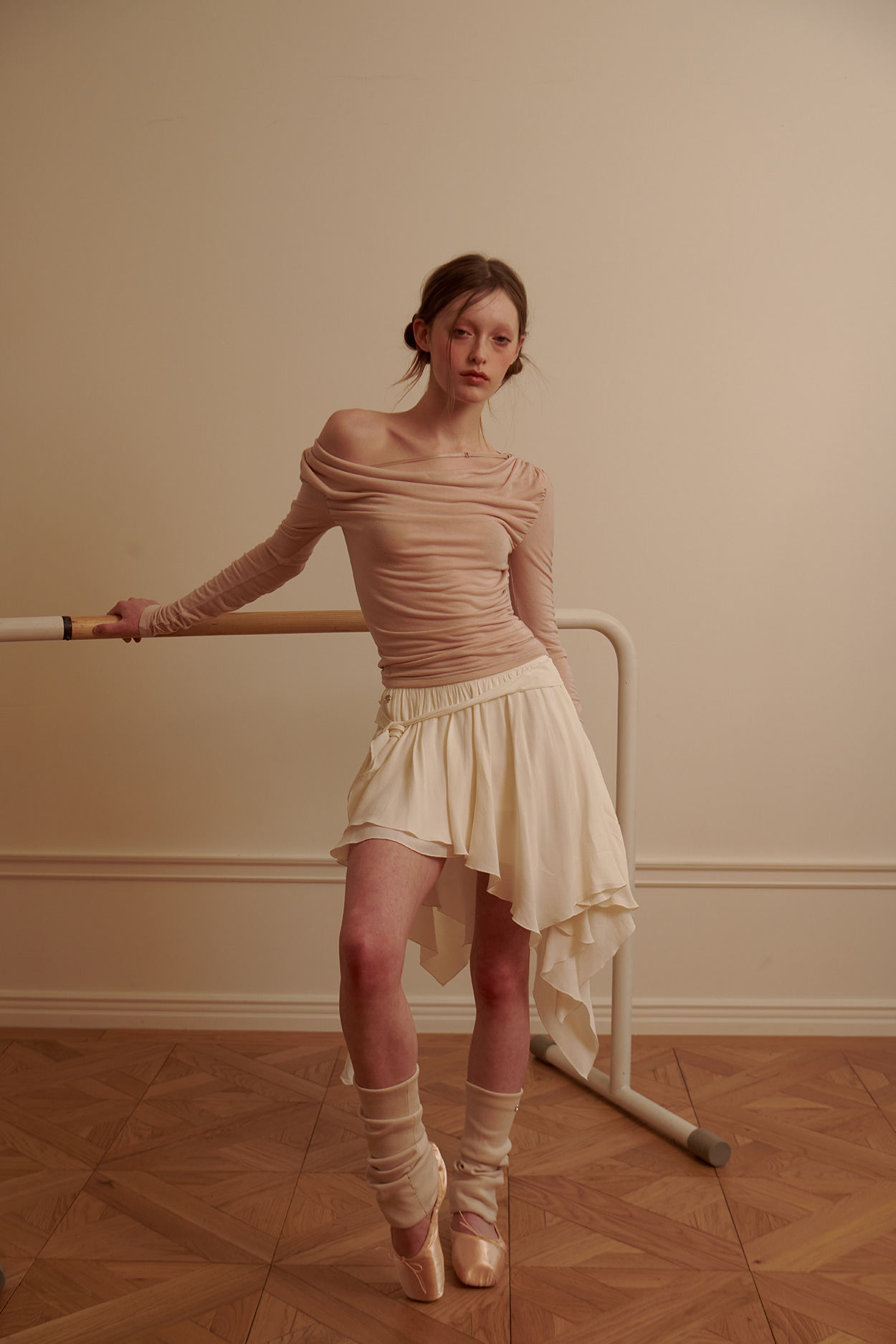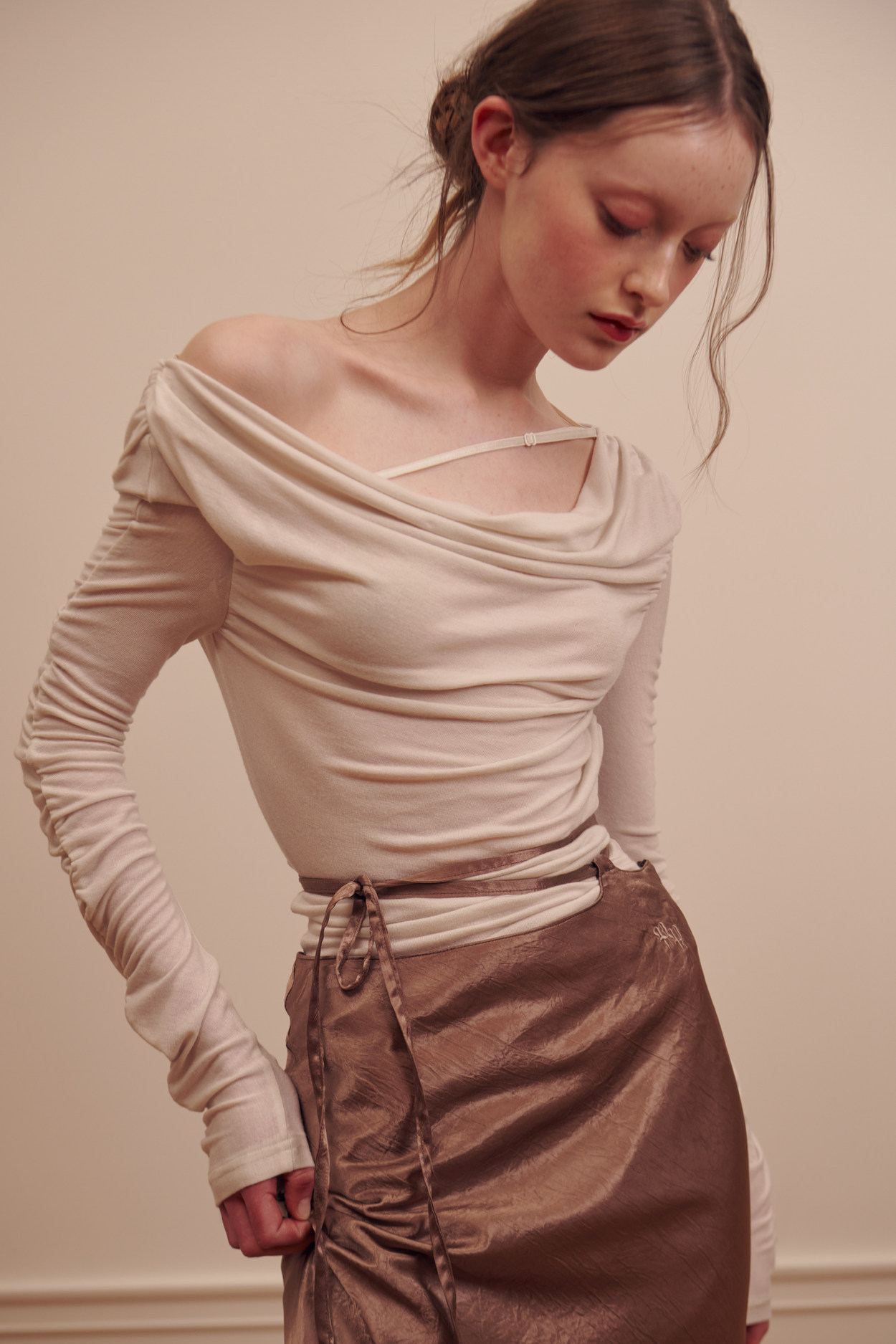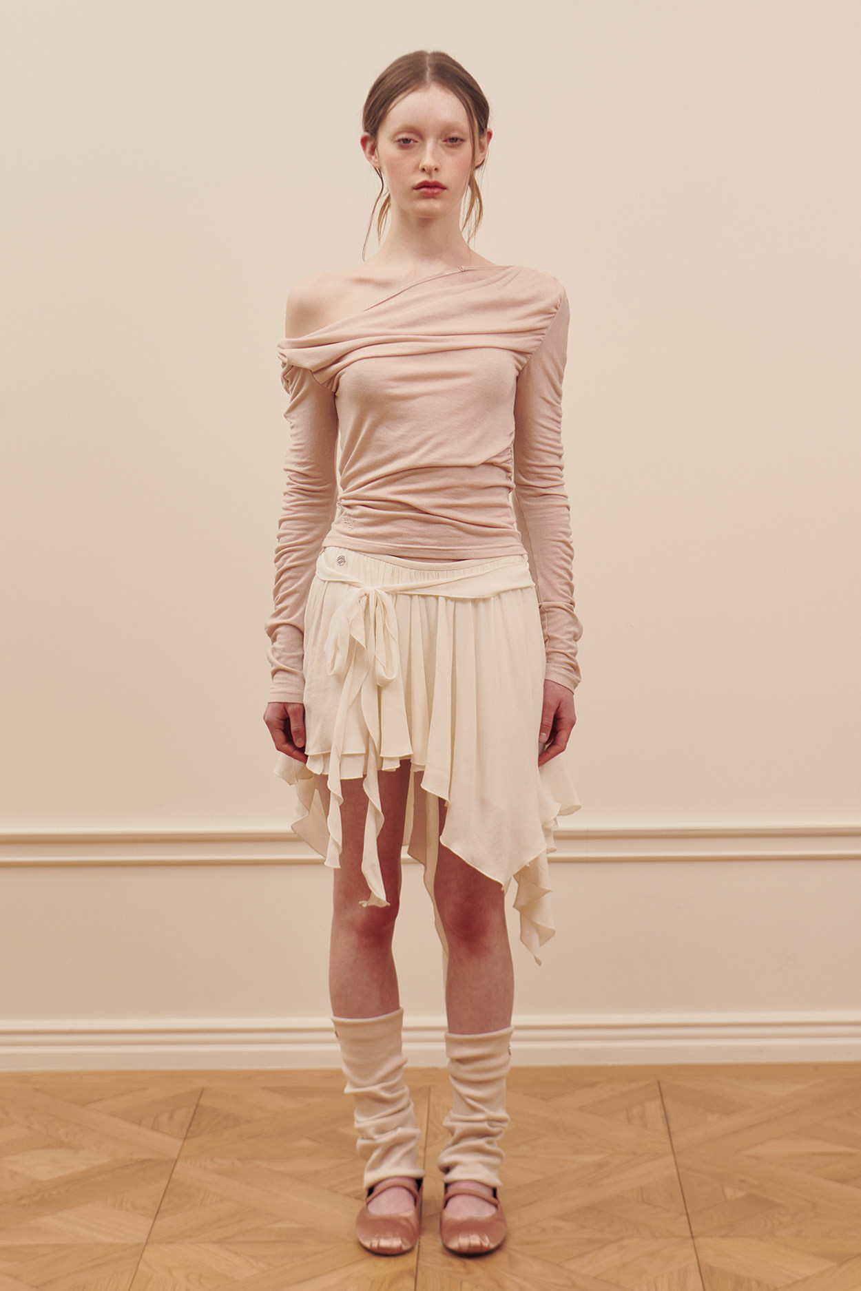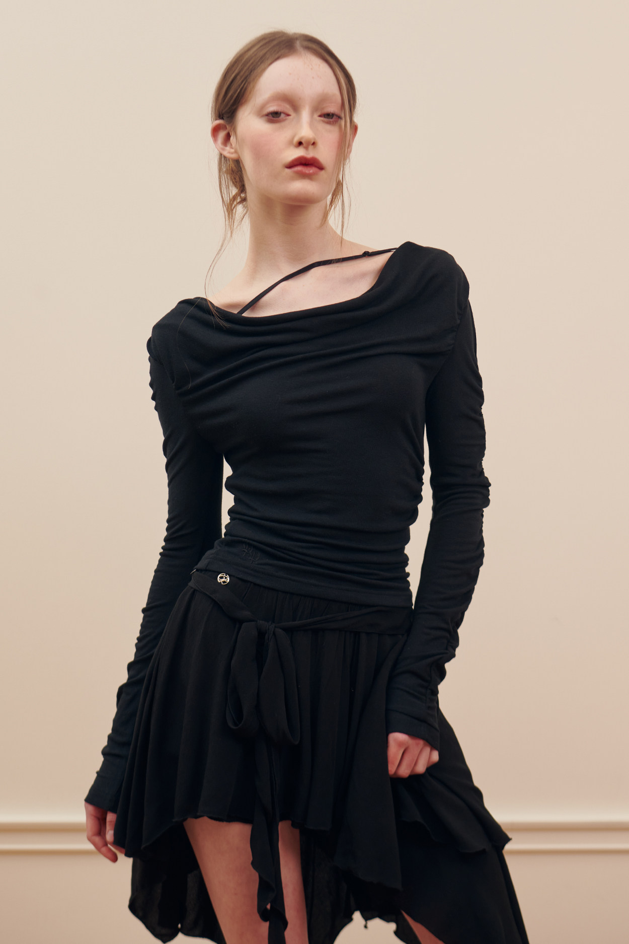 Летний элегантный приталенный тонкий асимметричный лонгслив