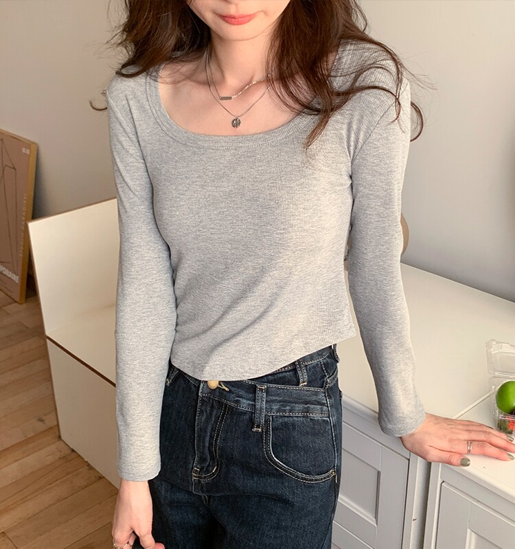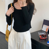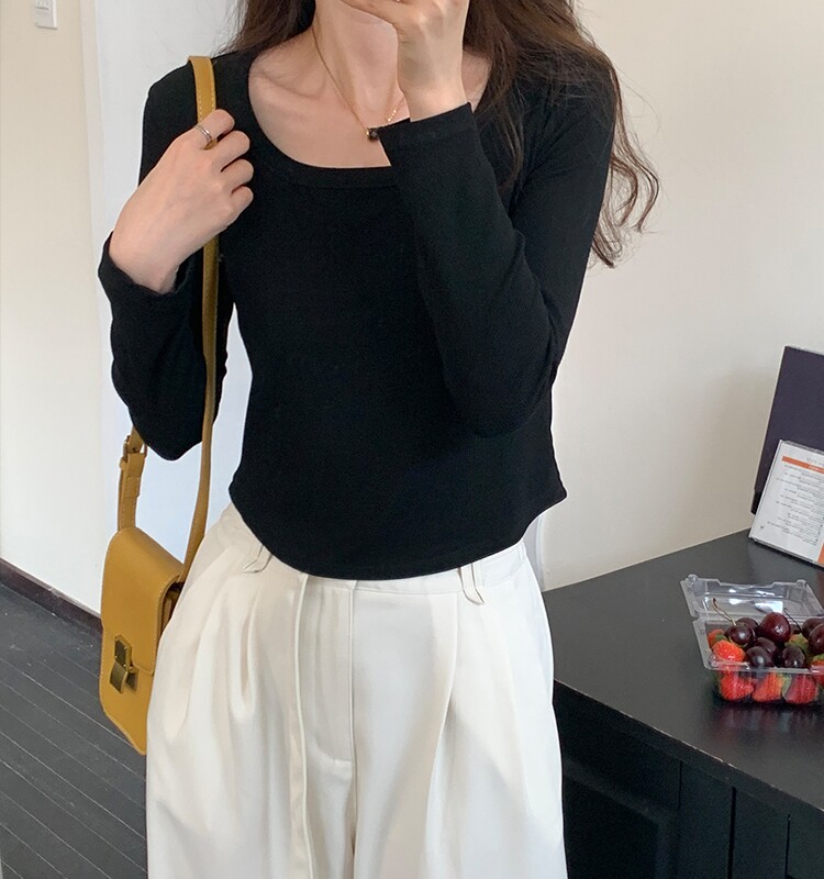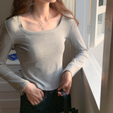 Приталенный весенний базовый приятный телу лонгслив, квадратный вырез, 2023, в западном стиле