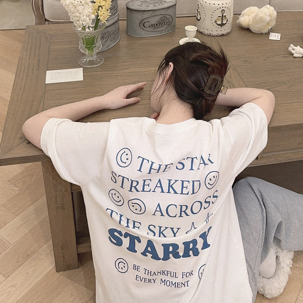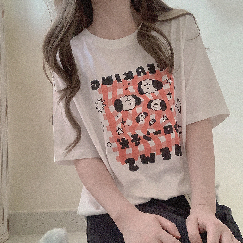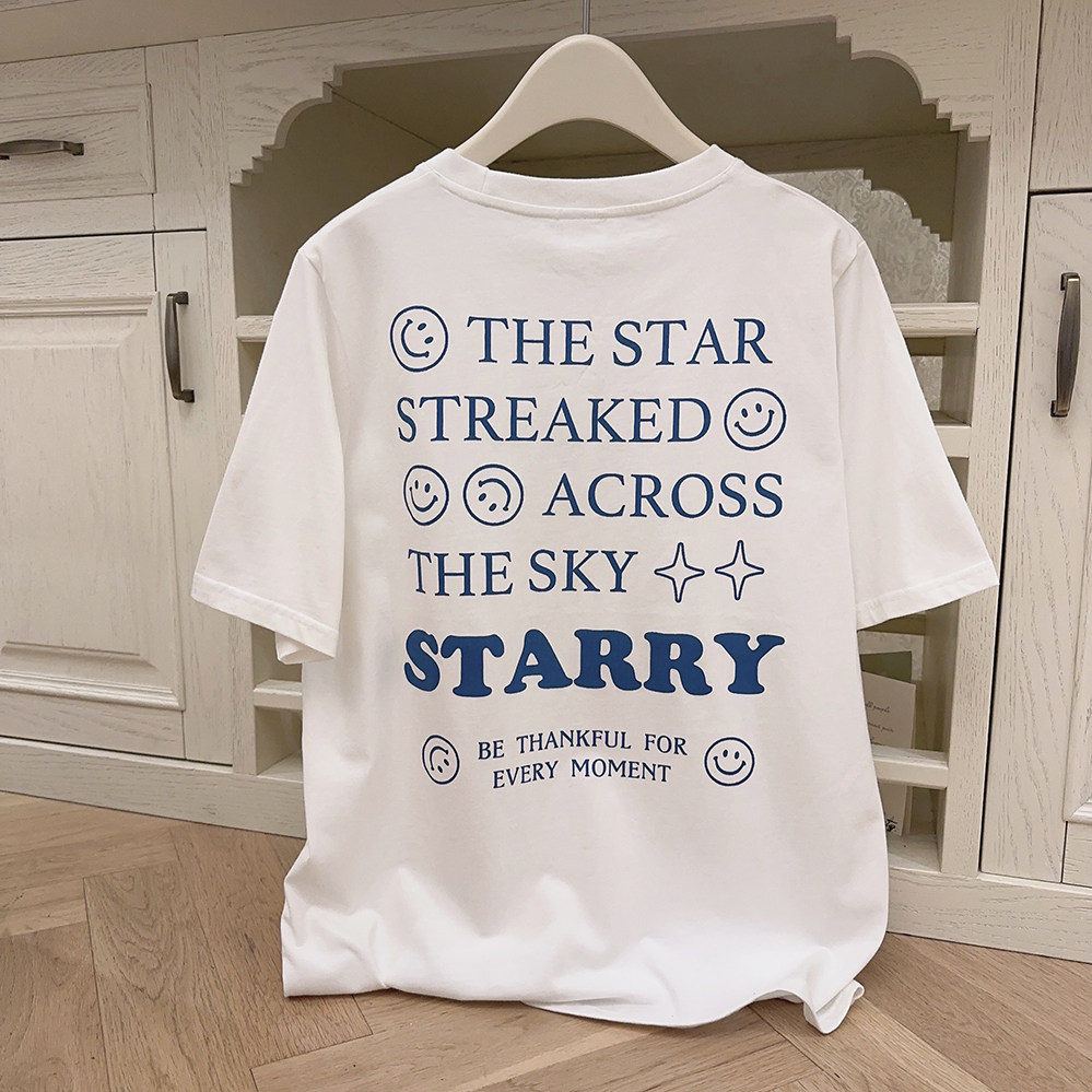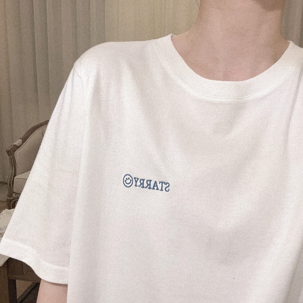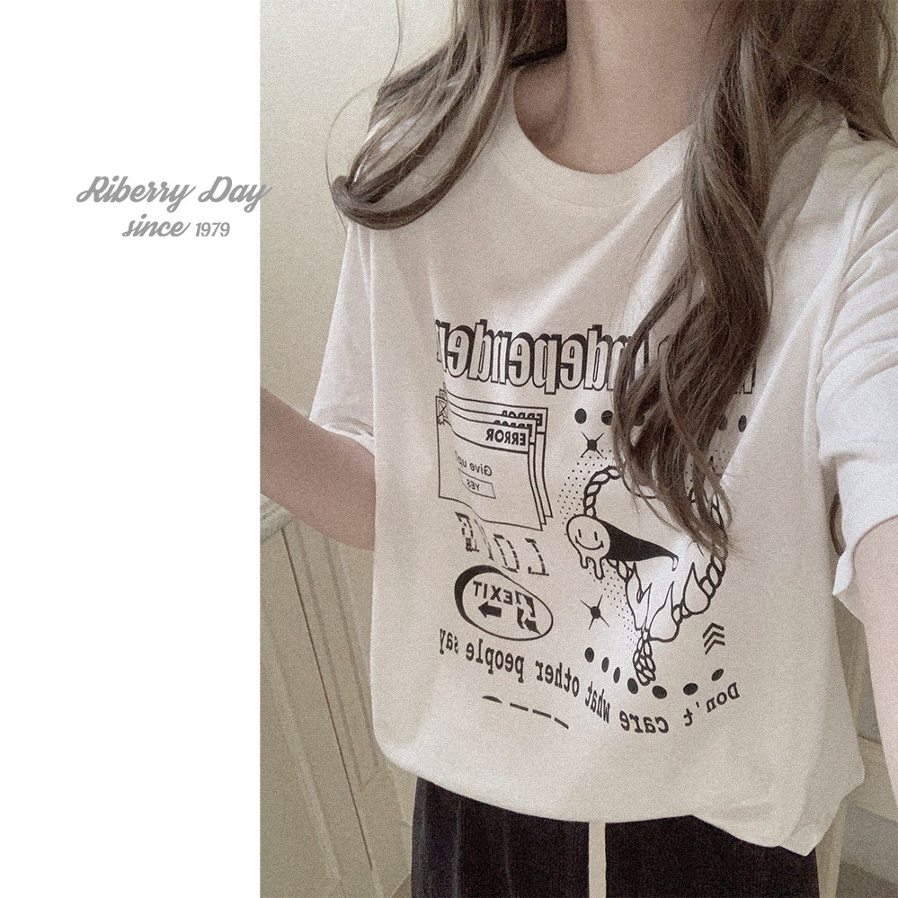 Ретро белая футболка с коротким рукавом с круглым воротником, свободный крой