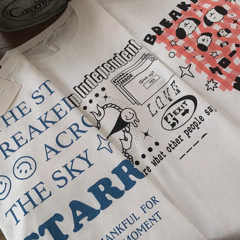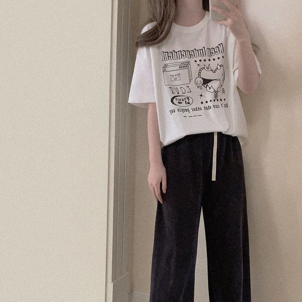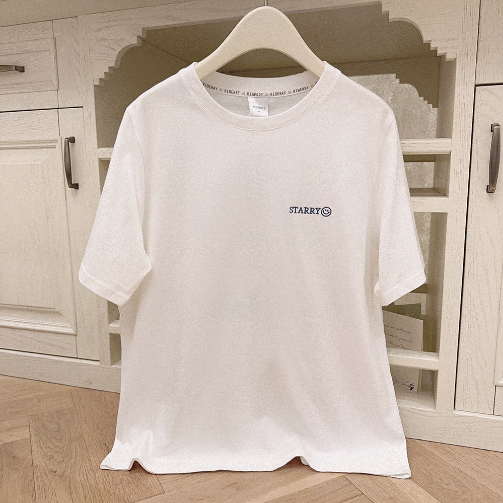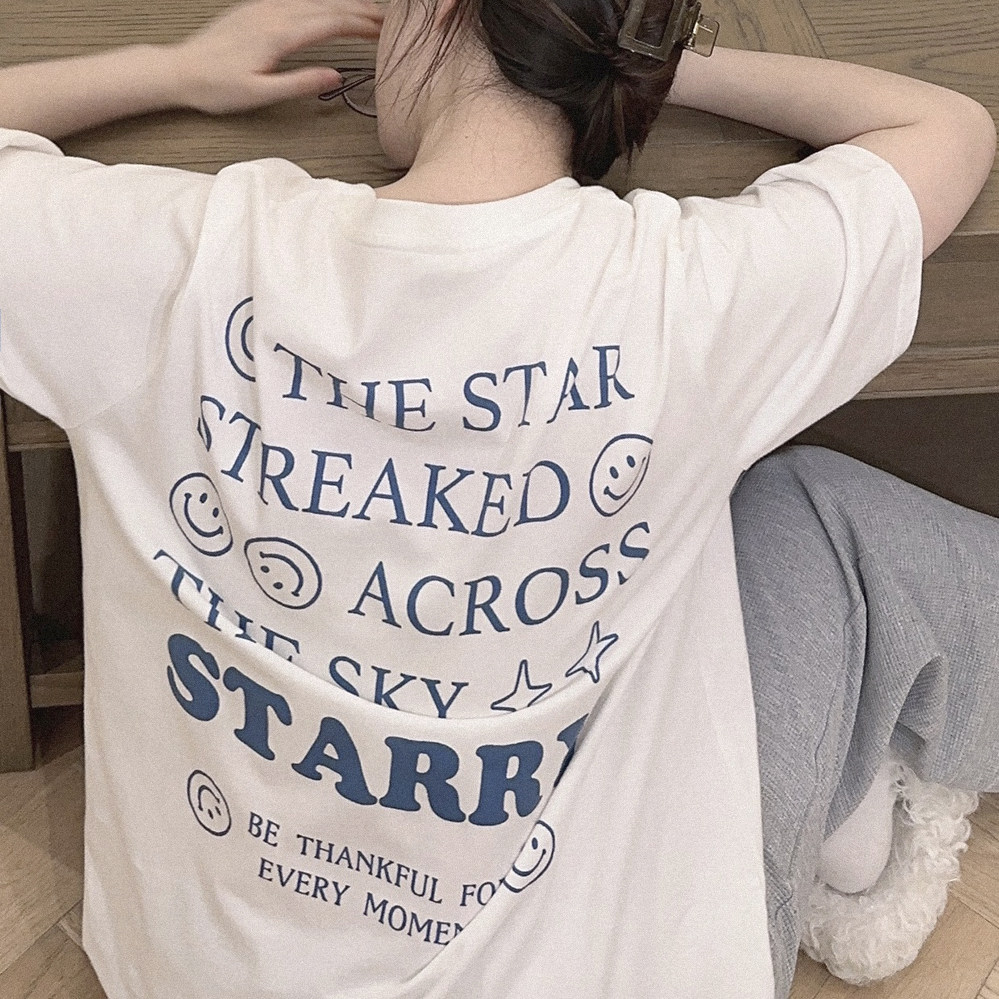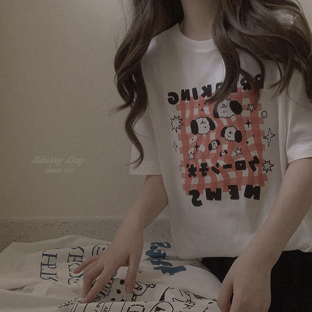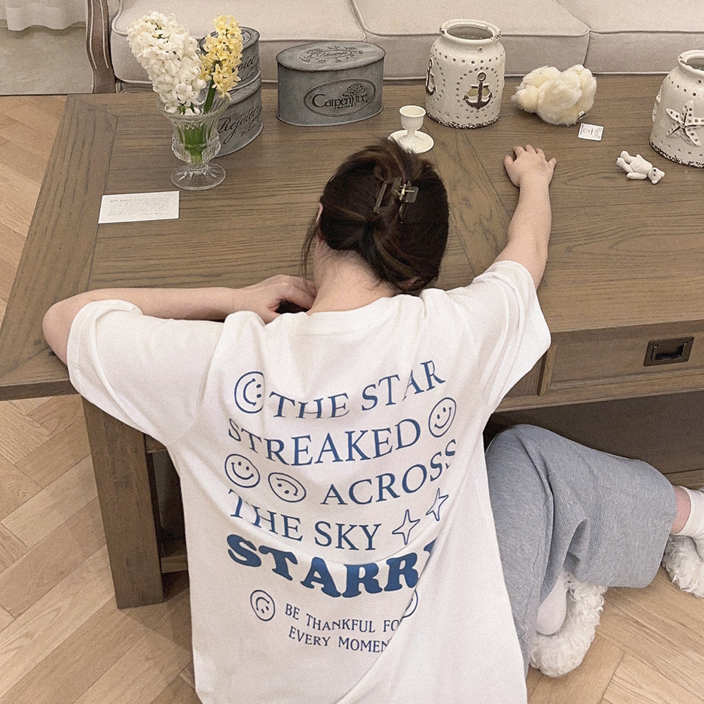 Ретро белая футболка с коротким рукавом с круглым воротником, свободный крой