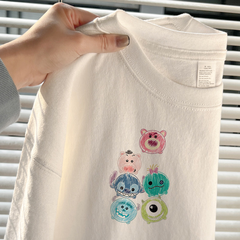 Хлопковая мультяшная летняя белая дизайнерская футболка с коротким рукавом, свободный крой, в американском стиле, тренд сезона