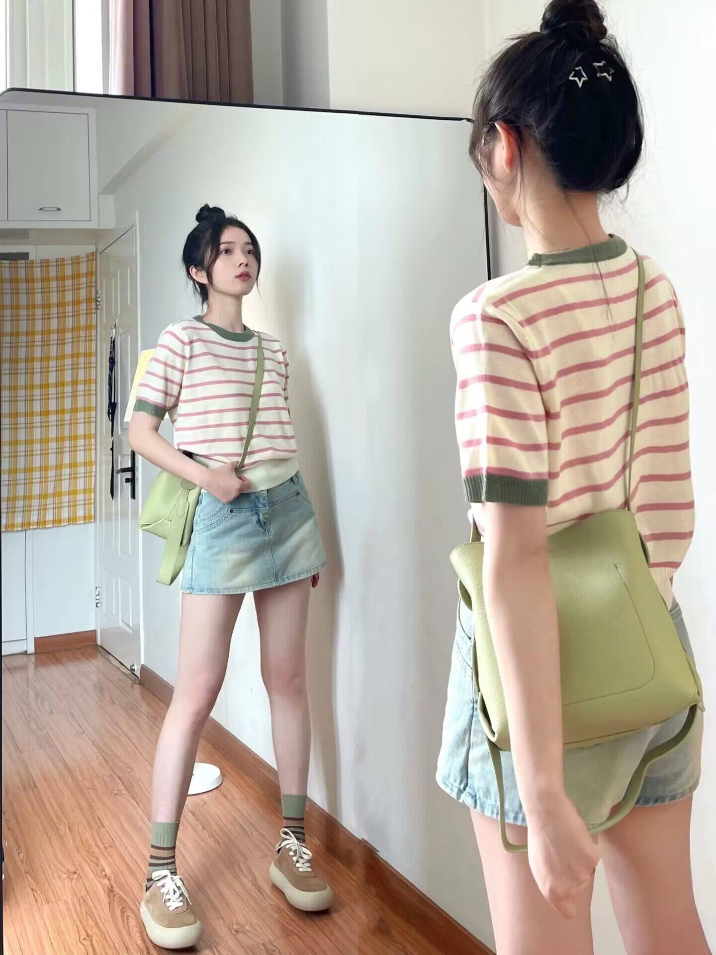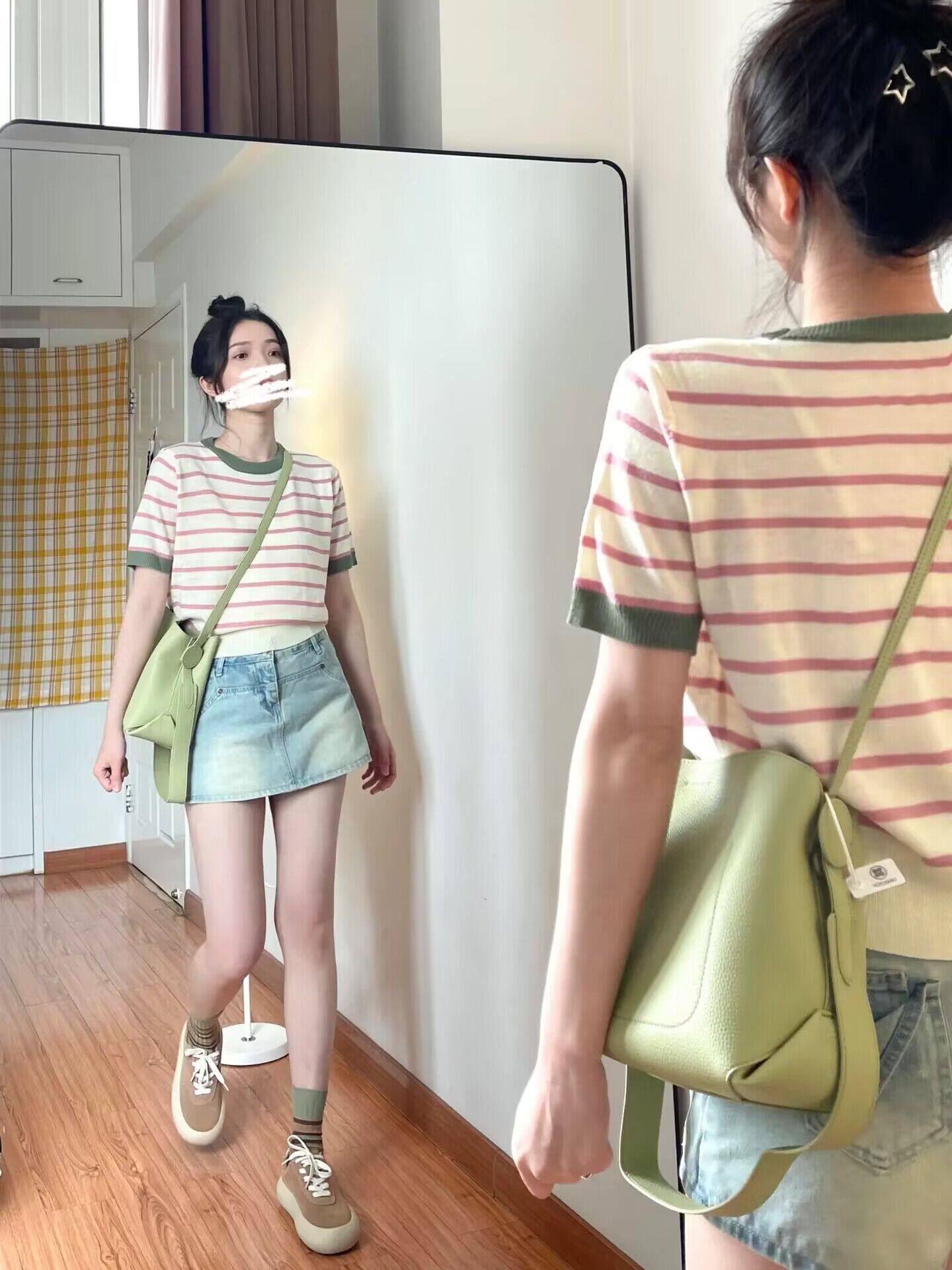 Трикотажная летняя футболка, базовая рубашка, в корейском стиле, короткий рукав