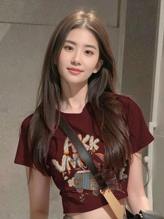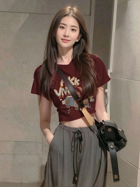Бордовая летняя милая футболка, США, короткий рукав