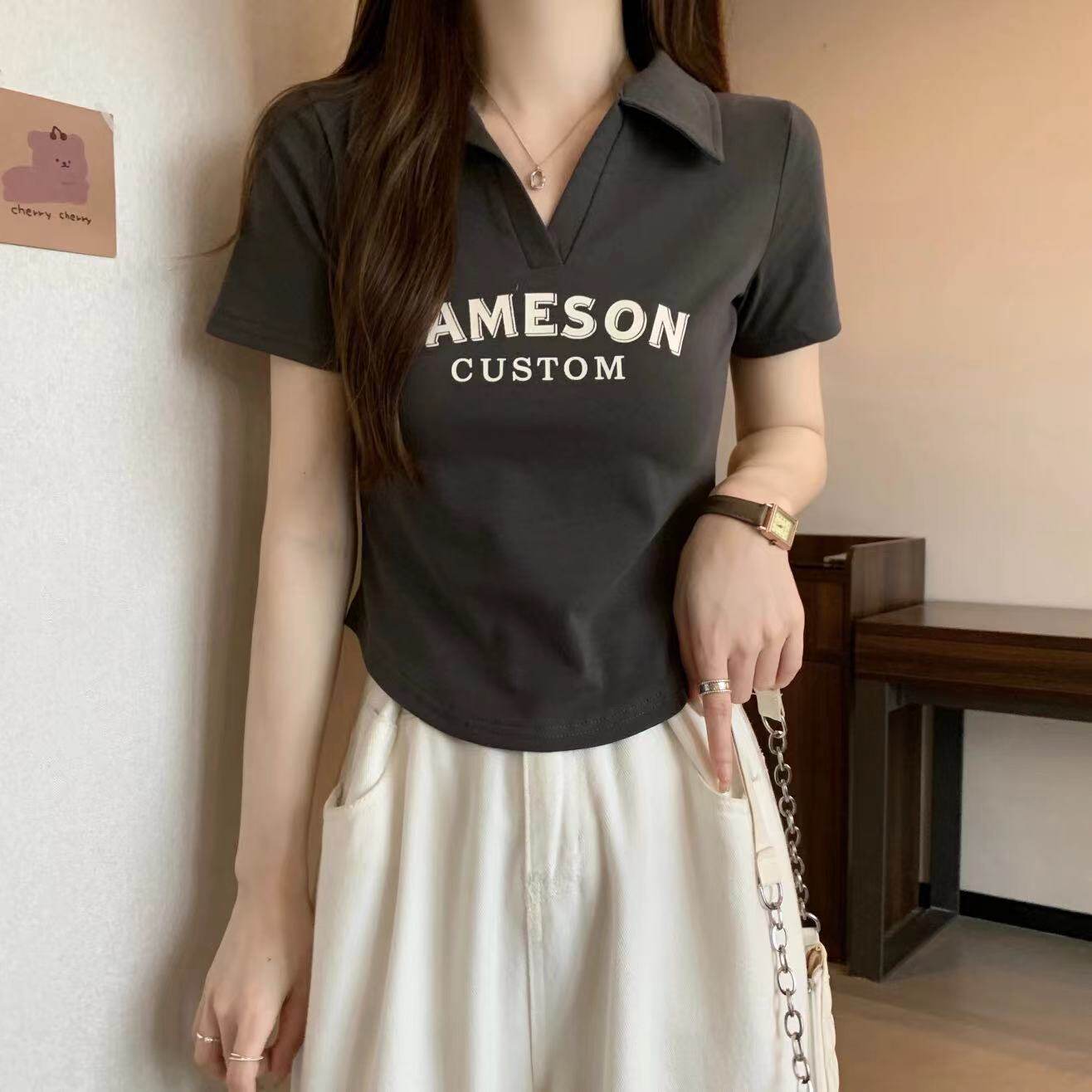 Летняя футболка, приталенный корсет, большой размер, в американском стиле, воротник поло