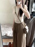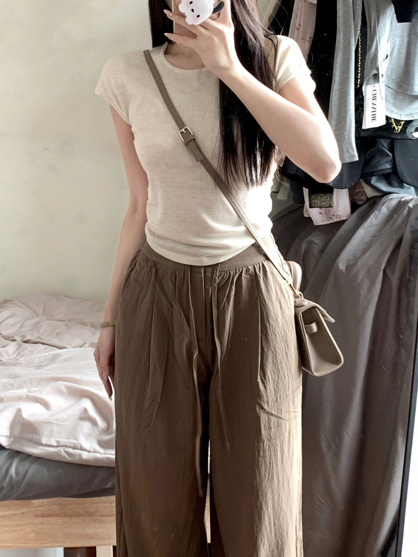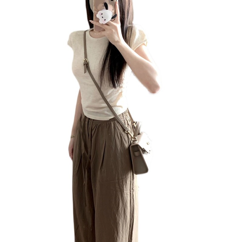 Трикотажная короткая базовая приятная телу дизайнерская футболка с коротким рукавом с круглым воротником, облегающий крой, тренд сезона