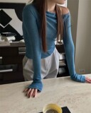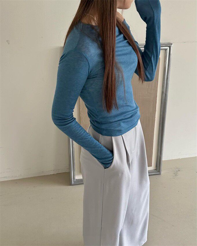 Уникальный Sei Corean Nice односторонний тонкий плечо тонкий теннисный хлопок с длинными рукавами тонкая базовая футболка