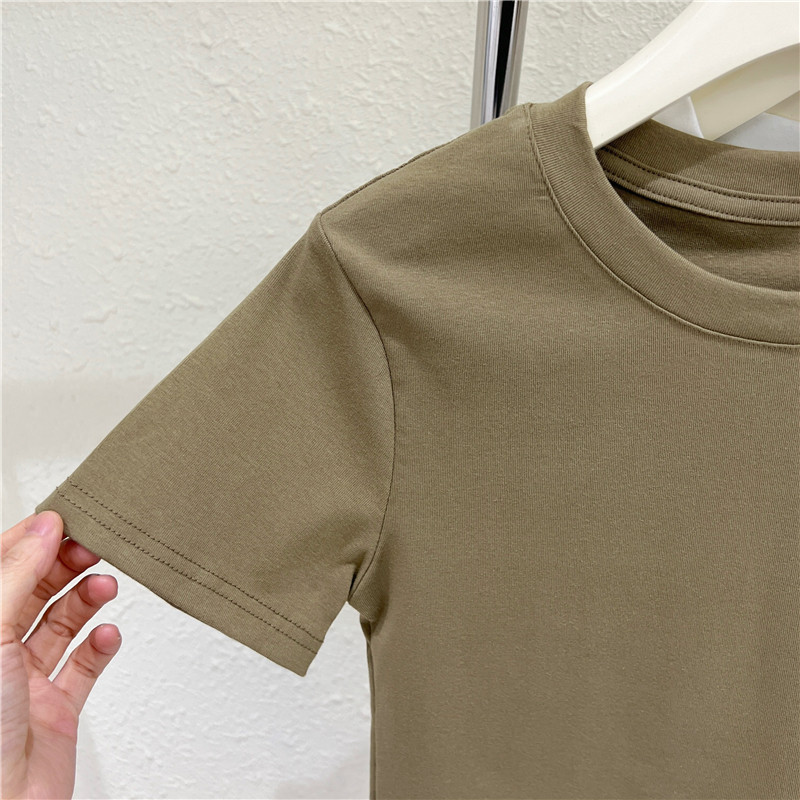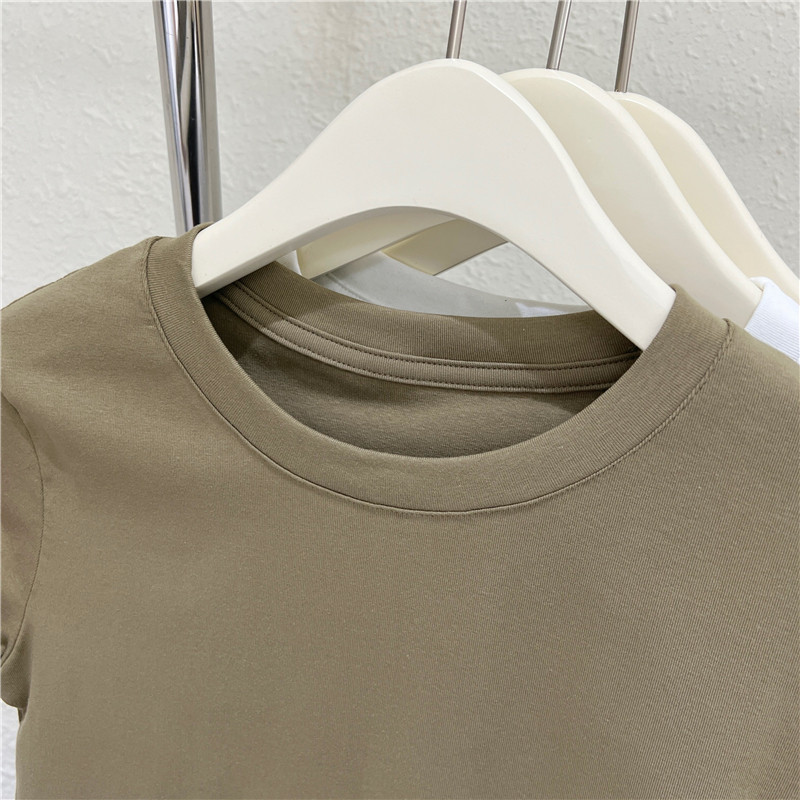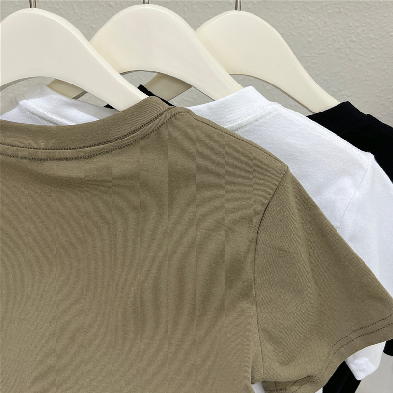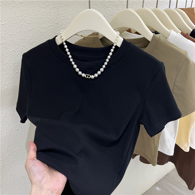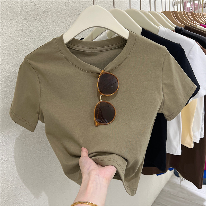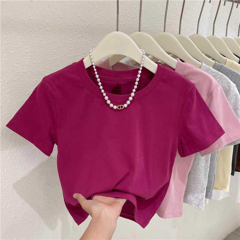 Летняя короткая футболка с коротким рукавом с круглым воротником, облегающий крой, высокая талия