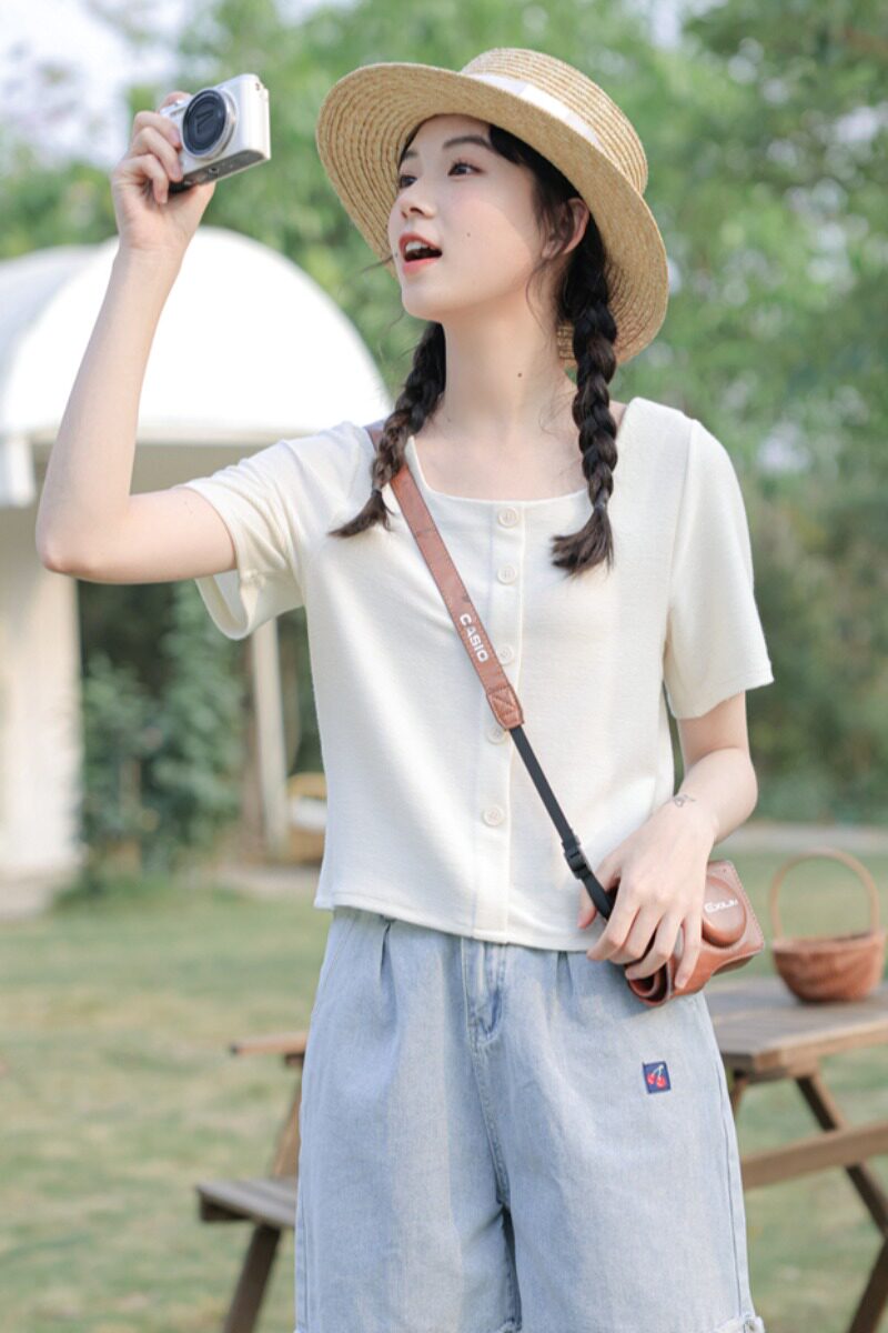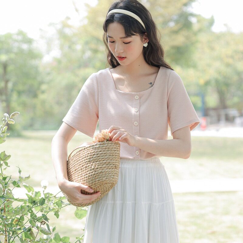 Милая свежая летняя приталенная футболка, по фигуре