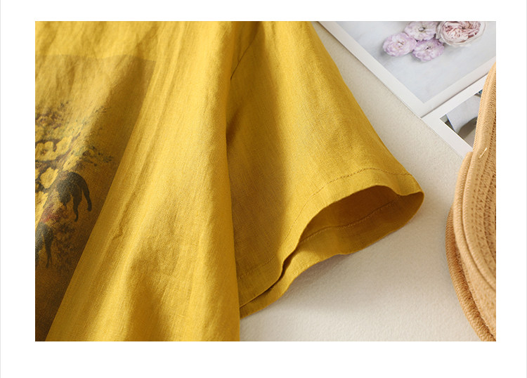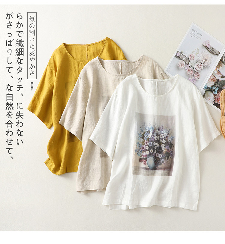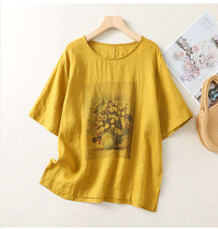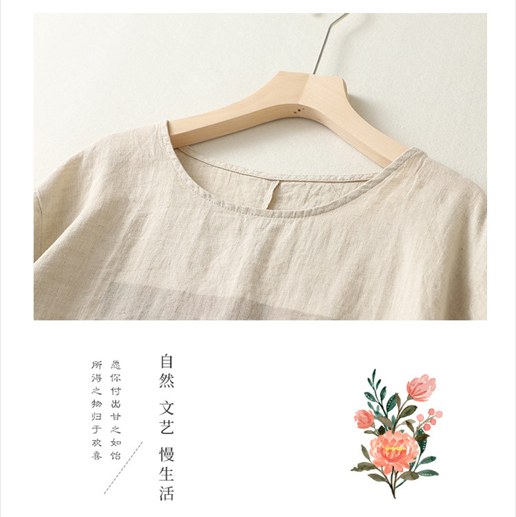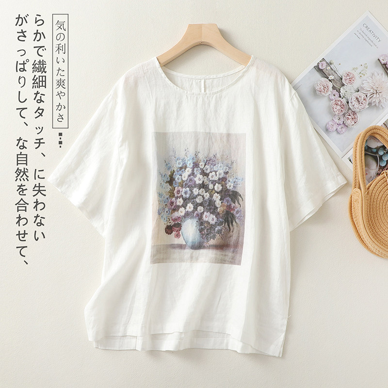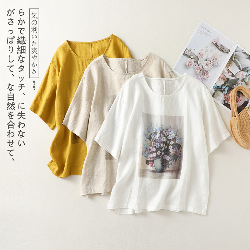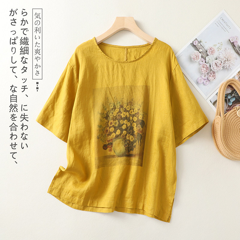 (Трансграничная торговля), ретро футболка с коротким рукавом, из хлопка и льна, свободный крой