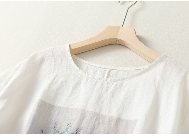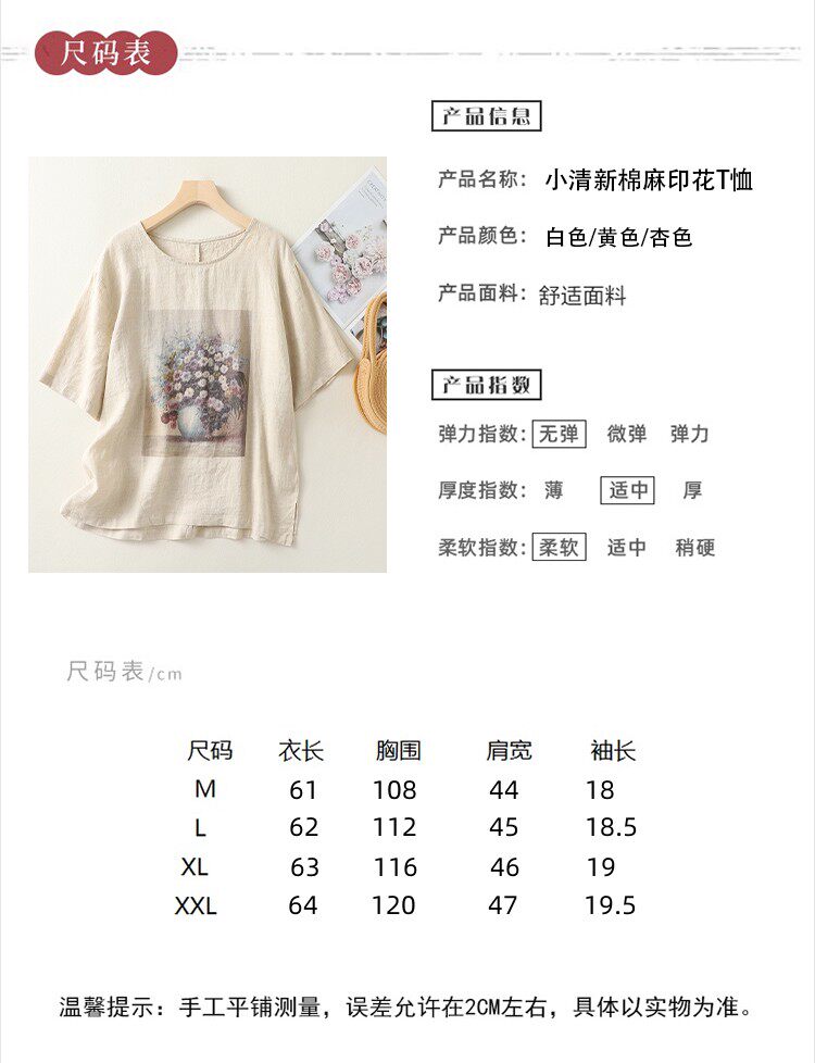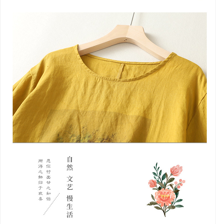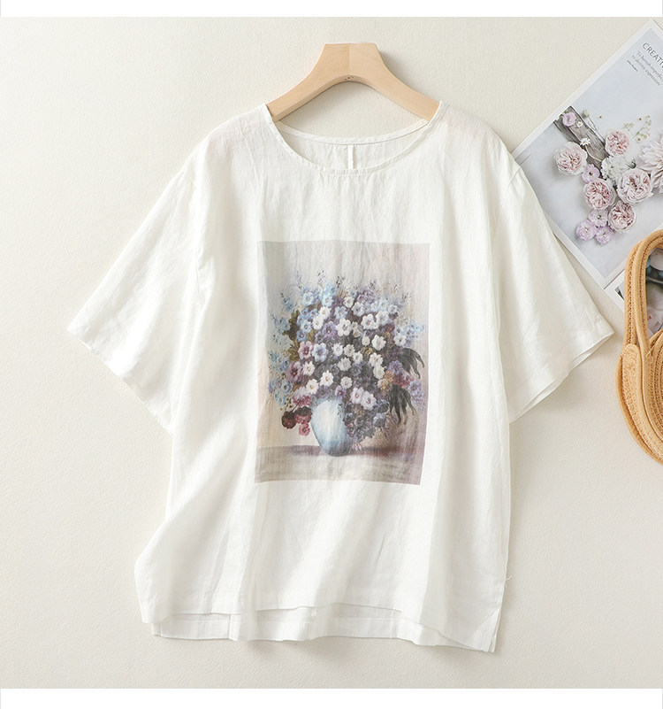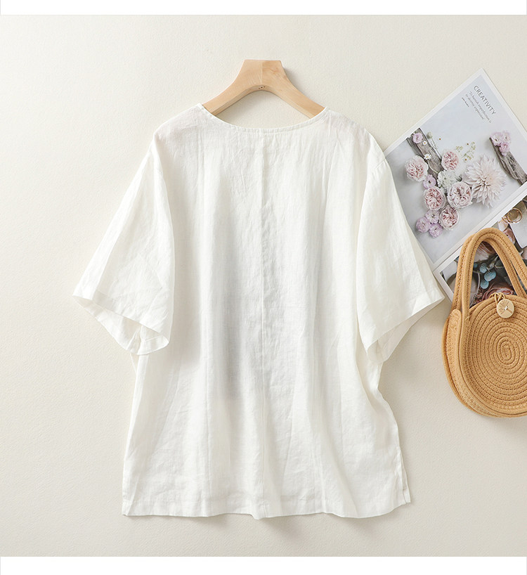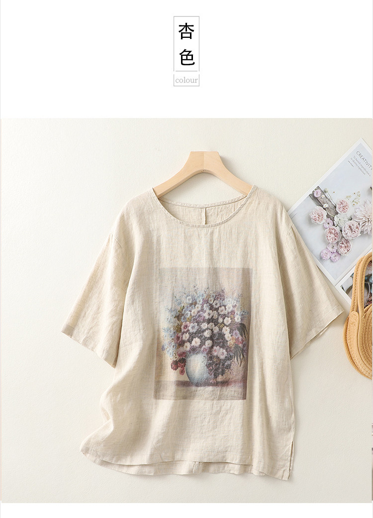 (Трансграничная торговля), ретро футболка с коротким рукавом, из хлопка и льна, свободный крой