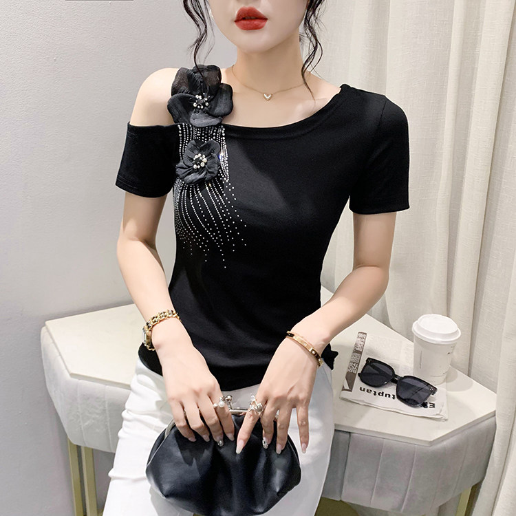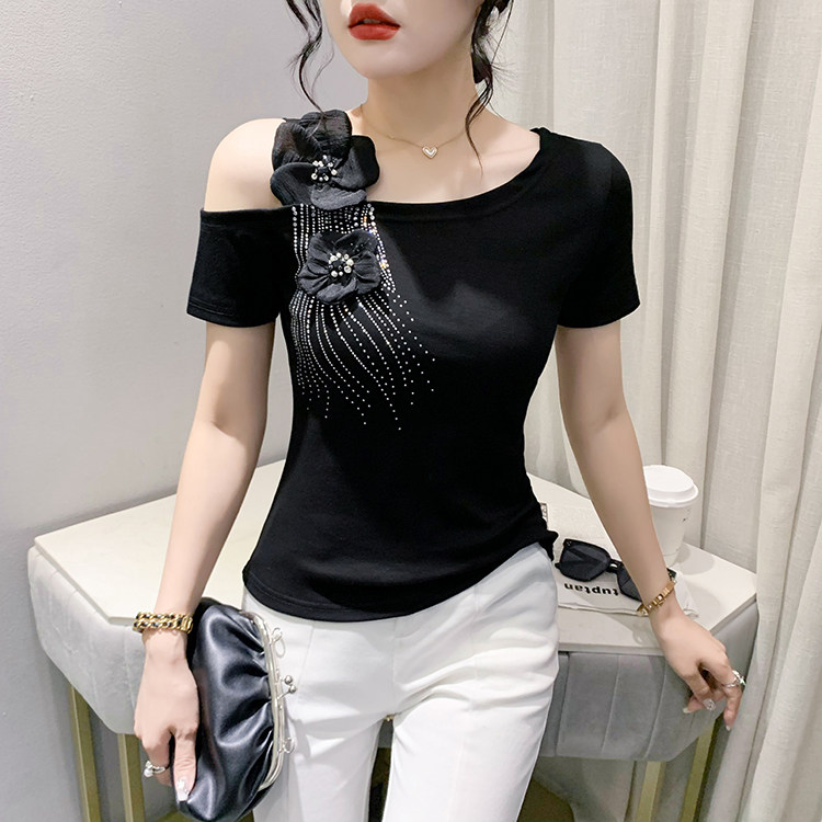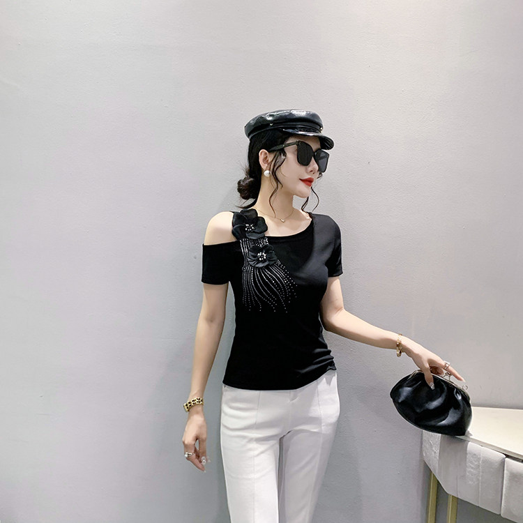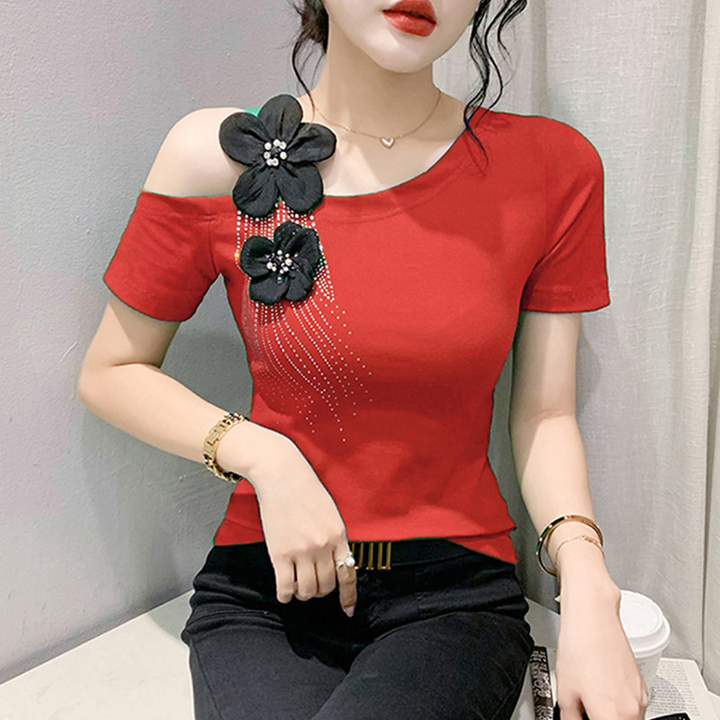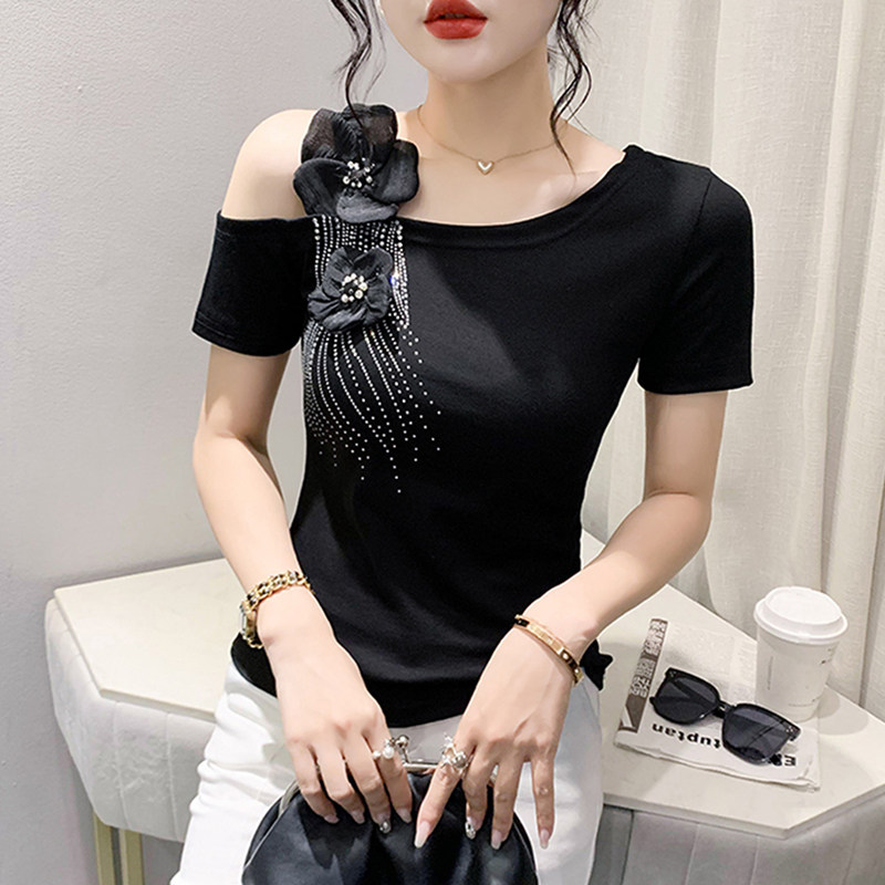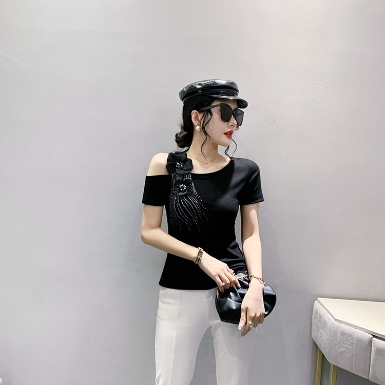 Сексуальная летняя дизайнерская модная футболка с коротким рукавом, тренд сезона, в западном стиле, облегающий крой
