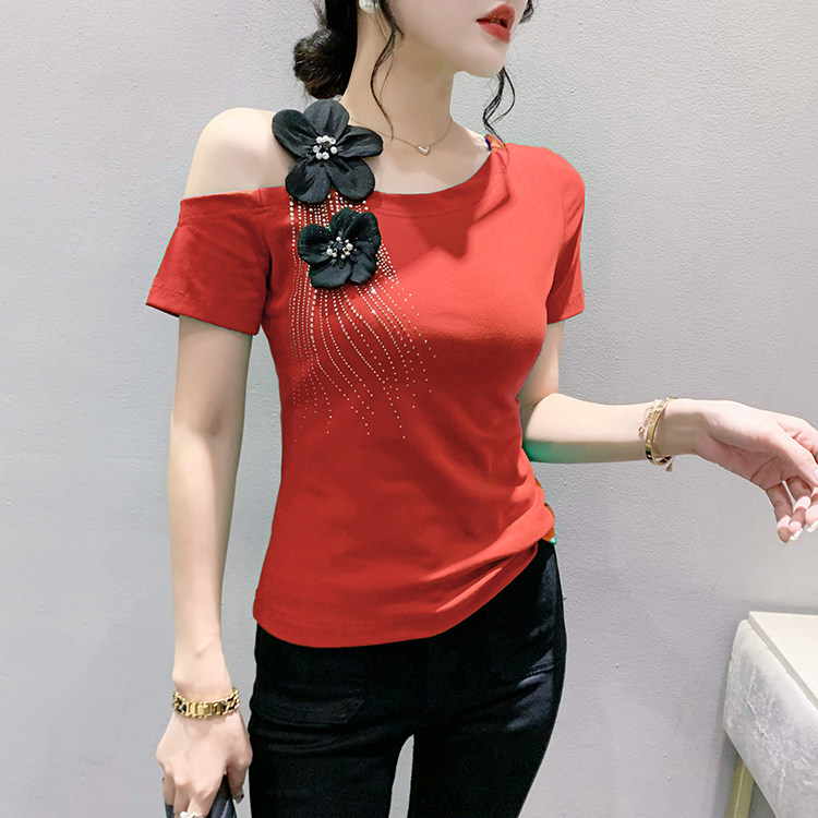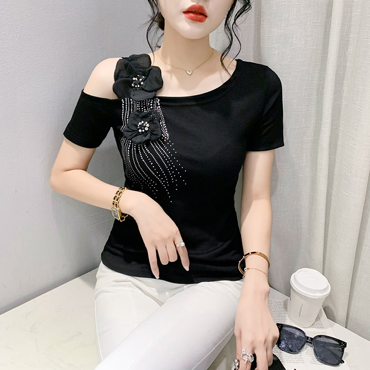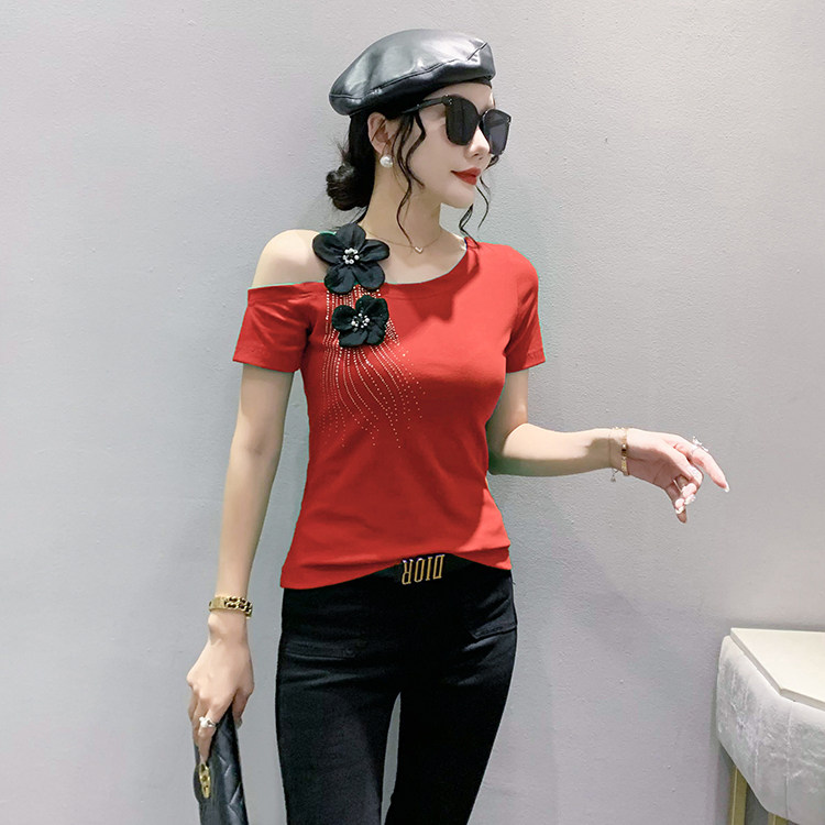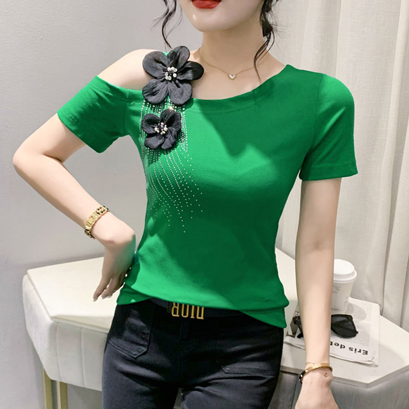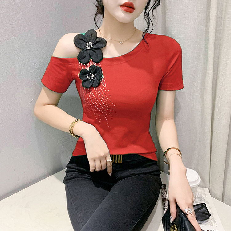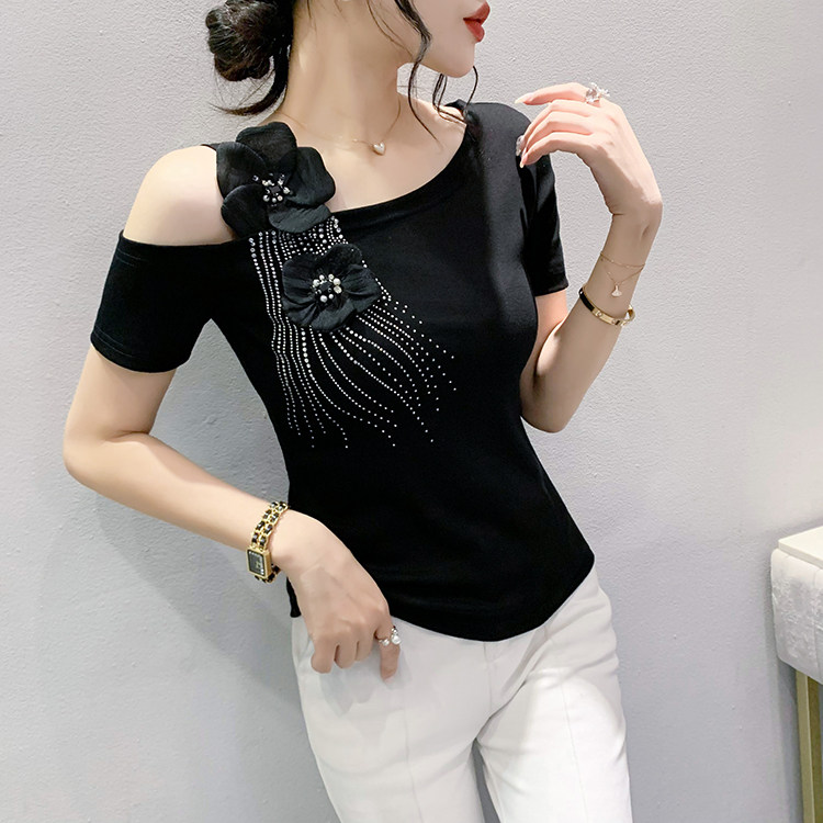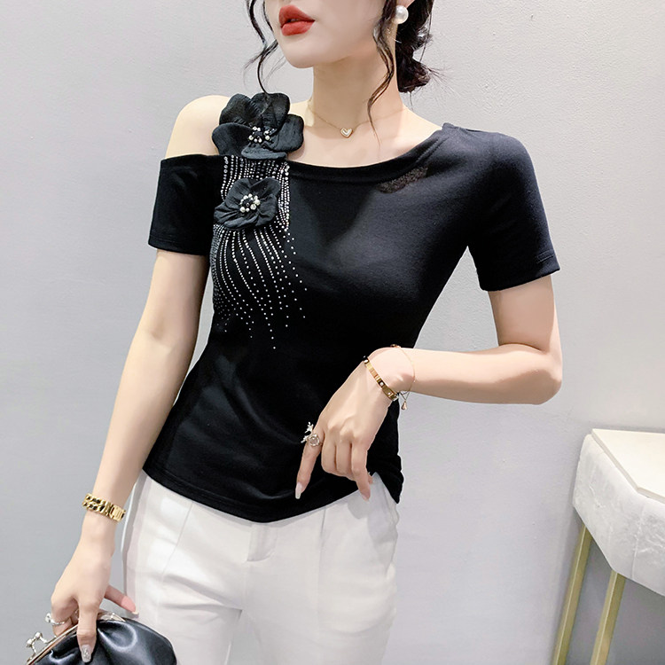 Сексуальная летняя дизайнерская модная футболка с коротким рукавом, тренд сезона, в западном стиле, облегающий крой