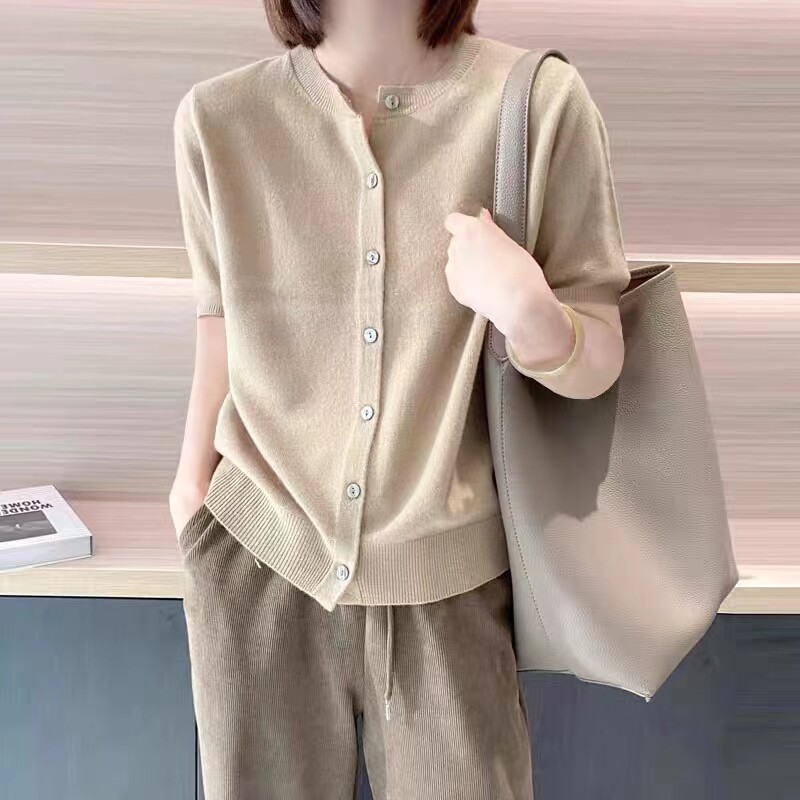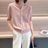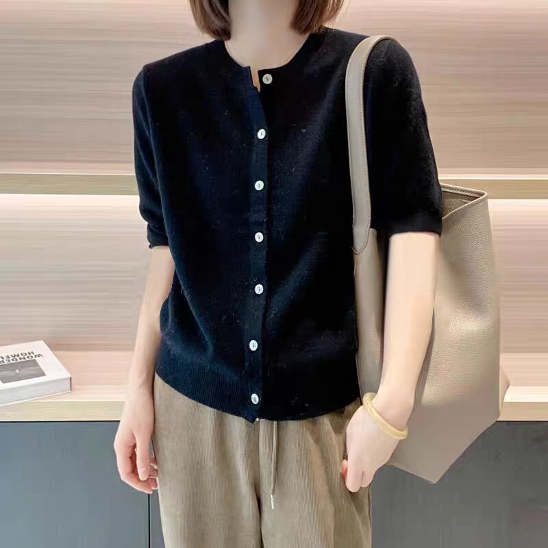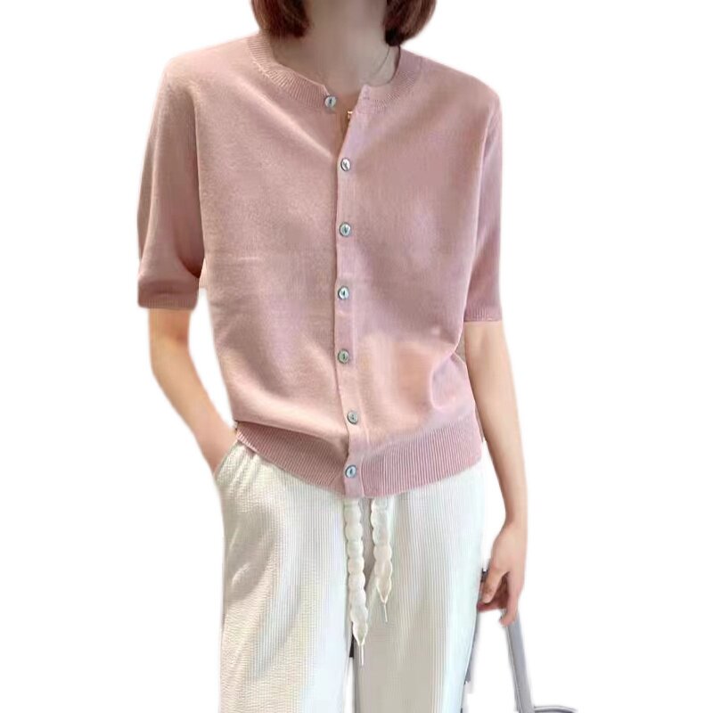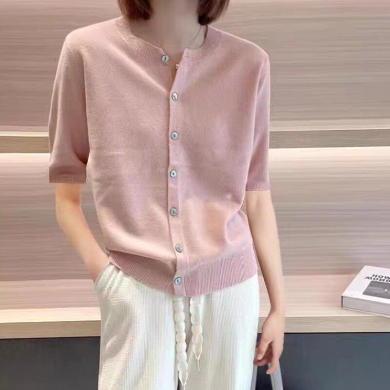 Тонкий трикотажный кардиган, короткий рукав, большой размер, свободный крой