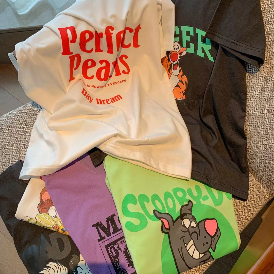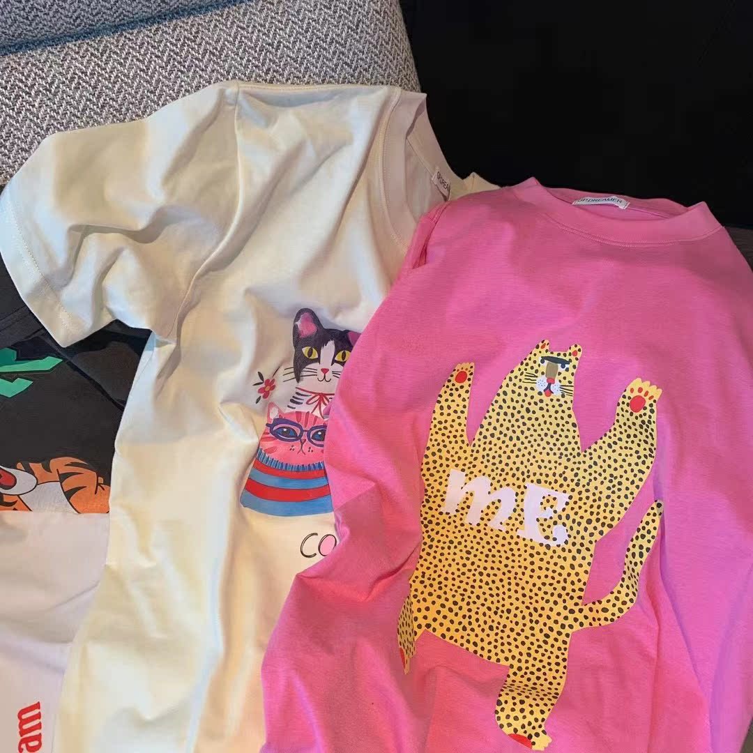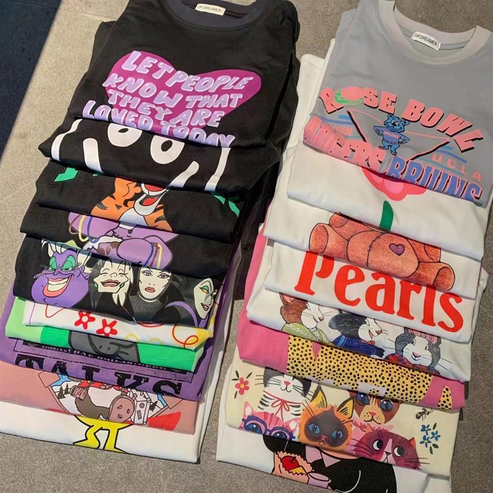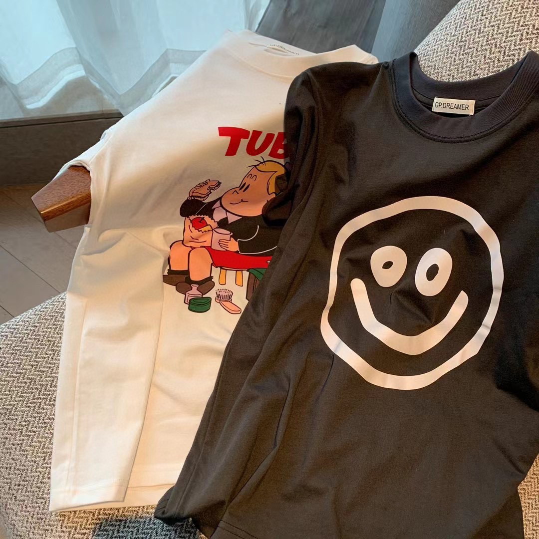 Японская хлопковая футболка с коротким рукавом для отдыха, оверсайз
