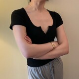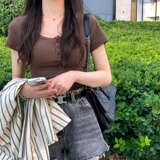 Классическая базовая хлопковая футболка с круглым воротником, короткий рукав, в обтяжку