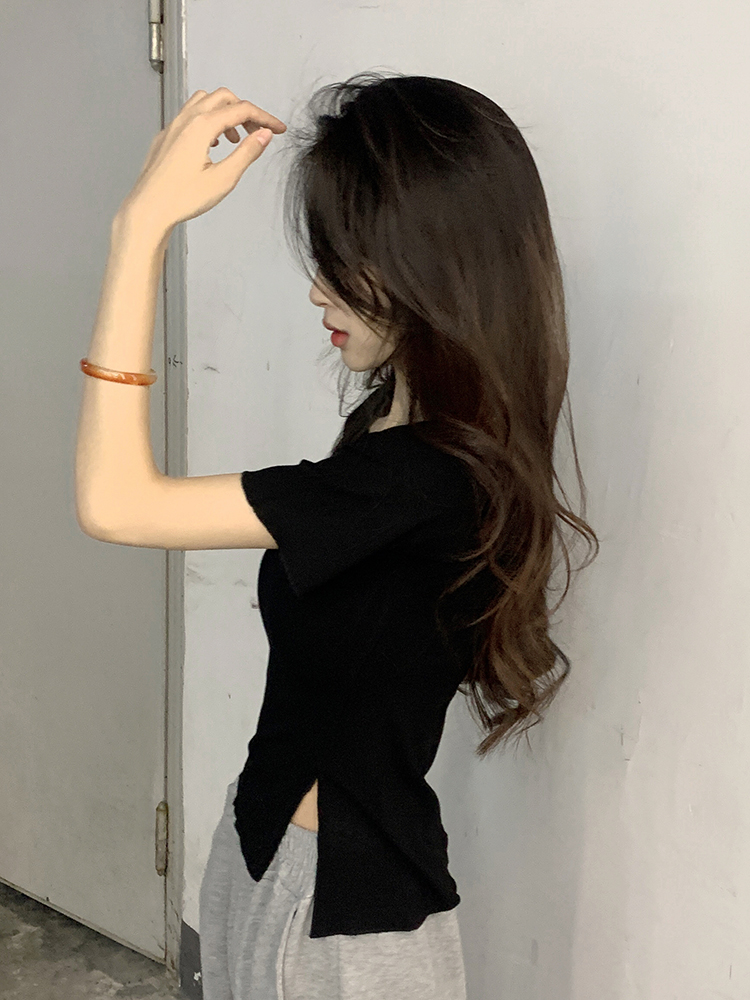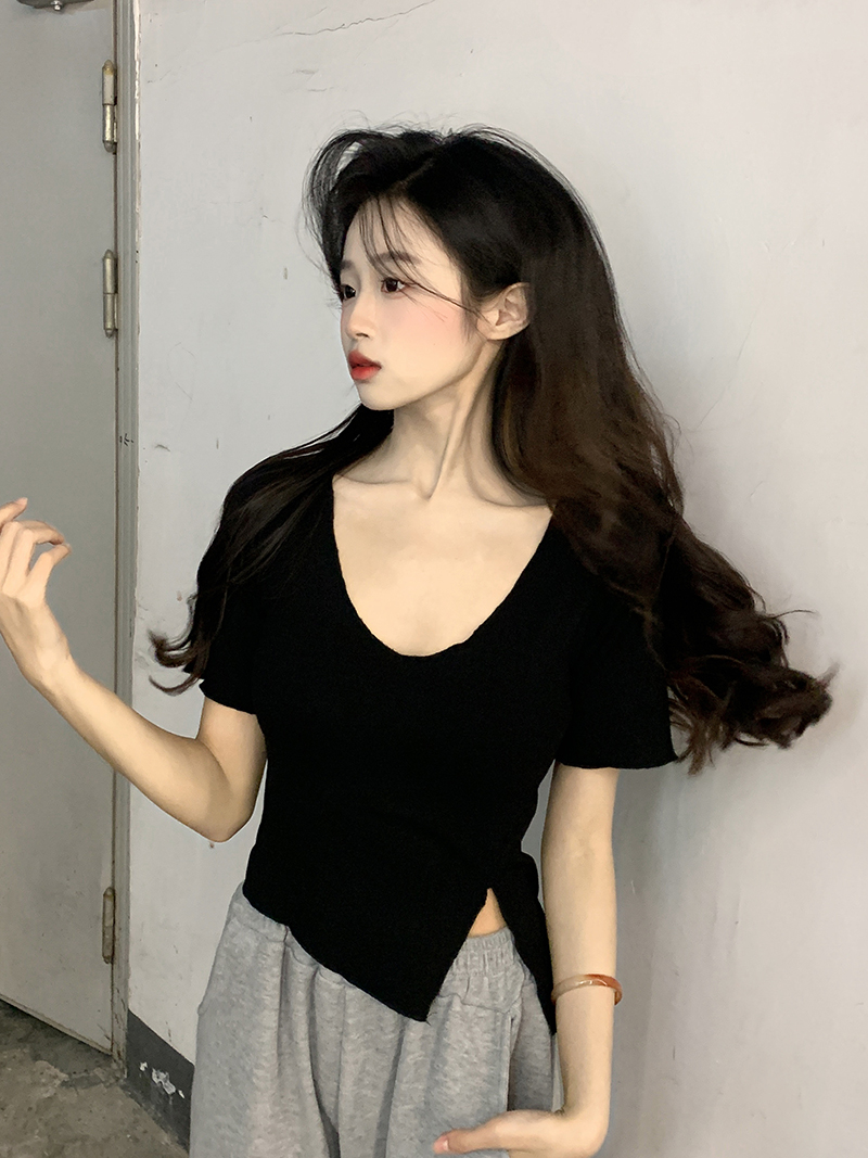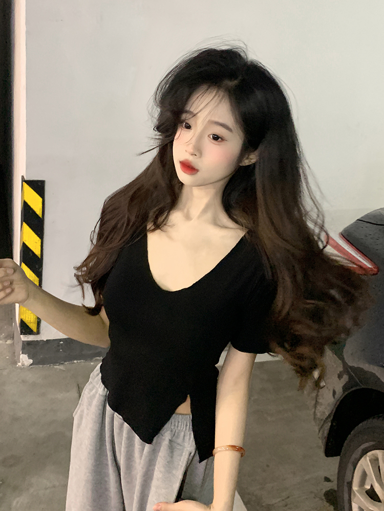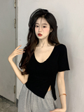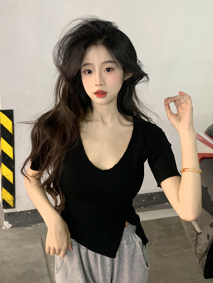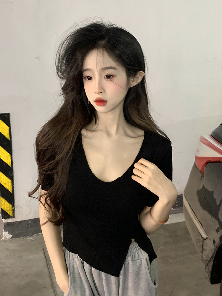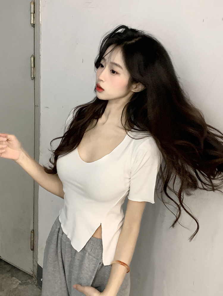 Белая летняя короткая хлопковая футболка, V-образный вырез, короткий рукав