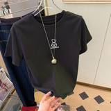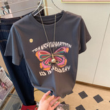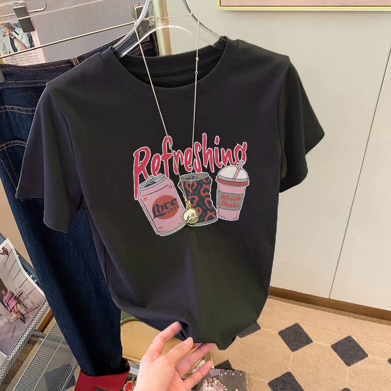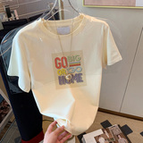 Хлопковая брендовая модная абрикосовая летняя футболка с коротким рукавом, в западном стиле, по фигуре
