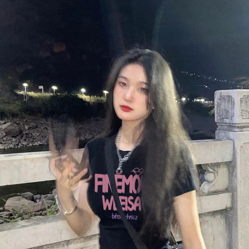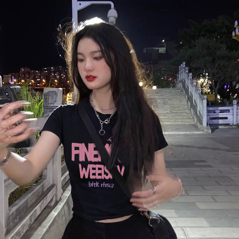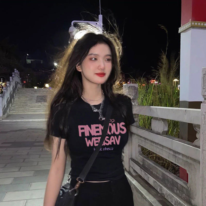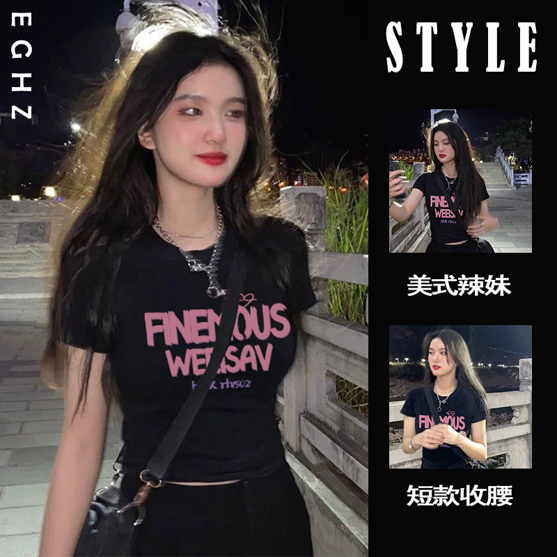 Ретро черная хлопковая дизайнерская приталенная футболка с коротким рукавом, в американском стиле, тренд сезона