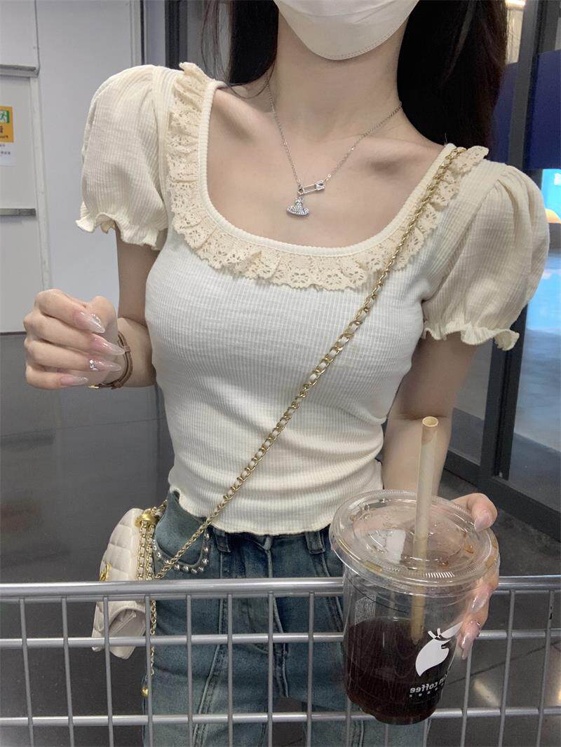 Приятная телу летняя сексуальная кружевная футболка, кружевное платье, рукава фонарики