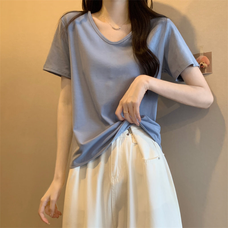 Летняя белая сексуальная базовая приятная телу футболка, V-образный вырез, короткий рукав, французский стиль