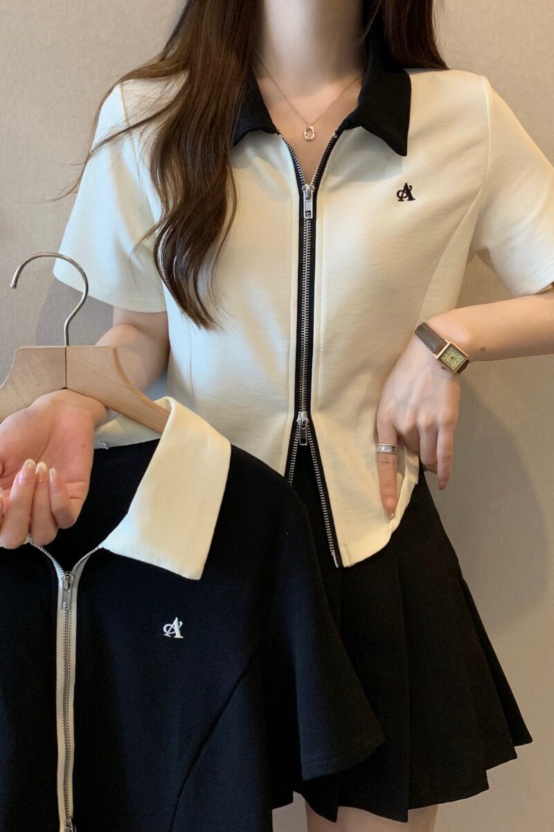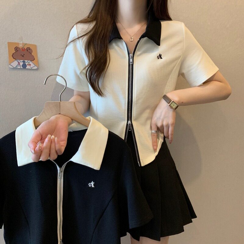 Модная летняя дизайнерская короткая футболка с молнией, большой размер, воротник поло