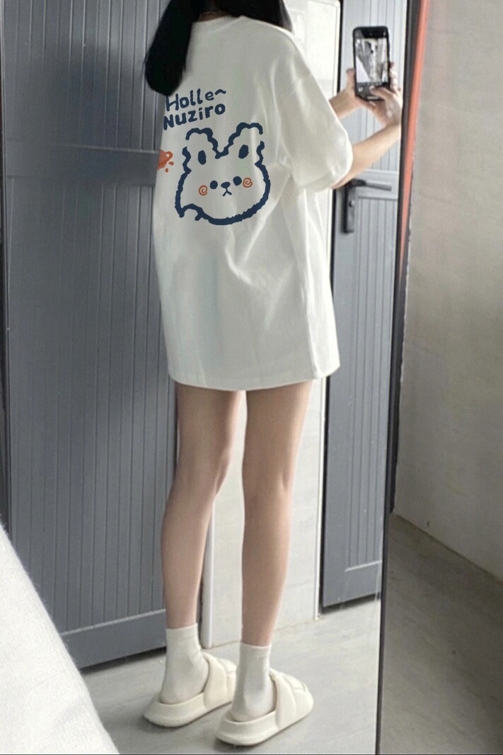 Белый хлопковый кролик, летняя брендовая футболка с коротким рукавом, оверсайз, в западном стиле