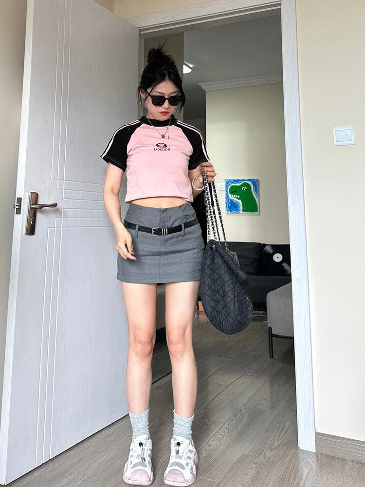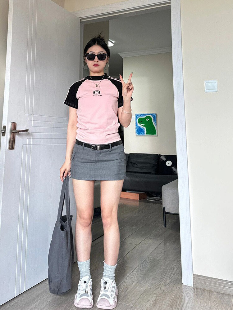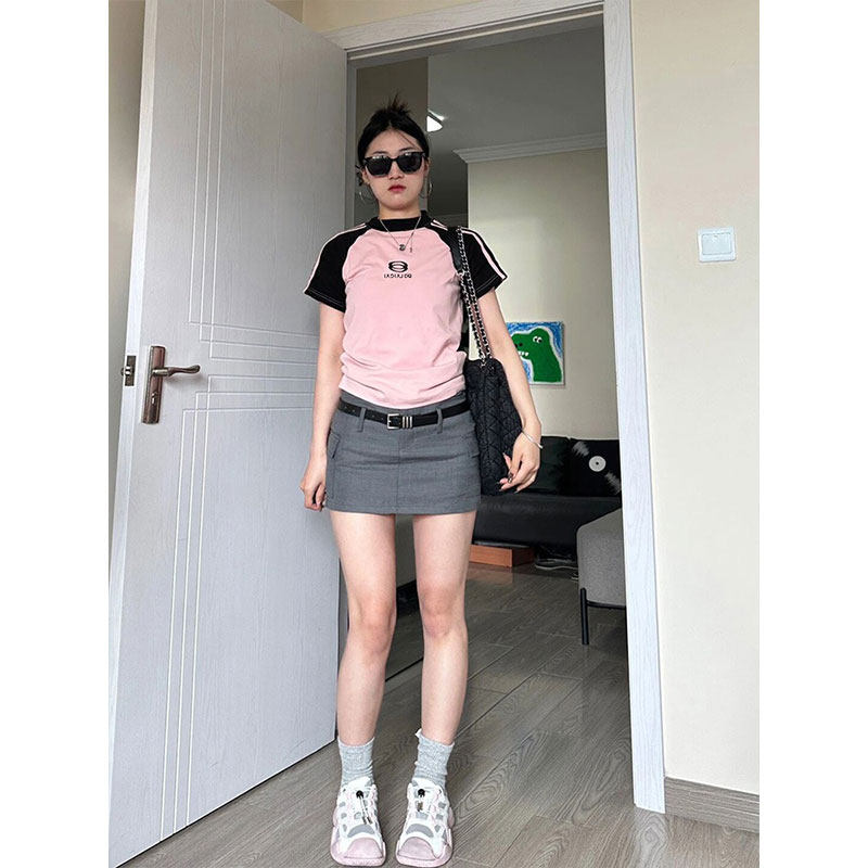 Ретро летняя эластичная приталенная короткая футболка с коротким рукавом, в американском стиле