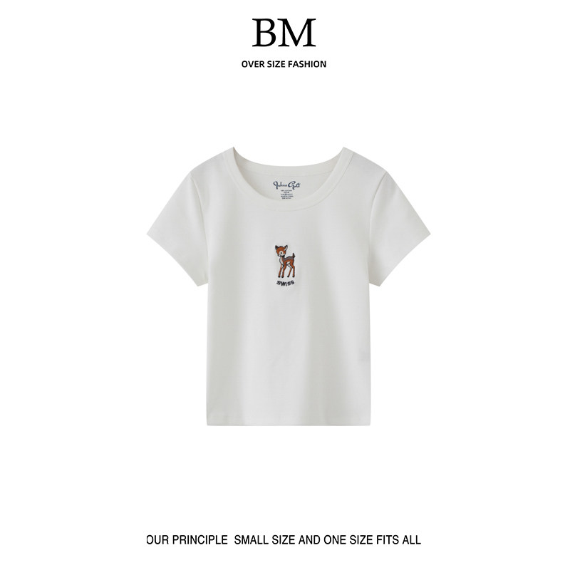Летняя мультяшная базовая футболка с коротким рукавом с круглым воротником, с вышивкой, облегающий крой