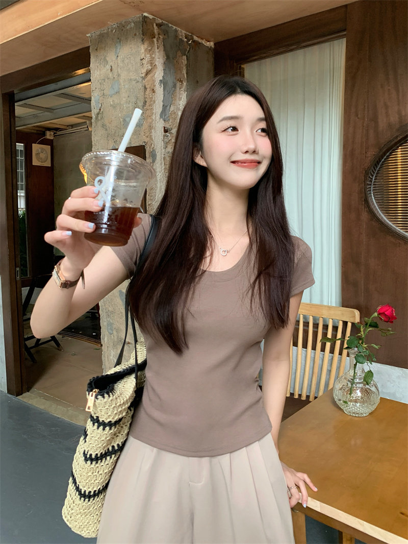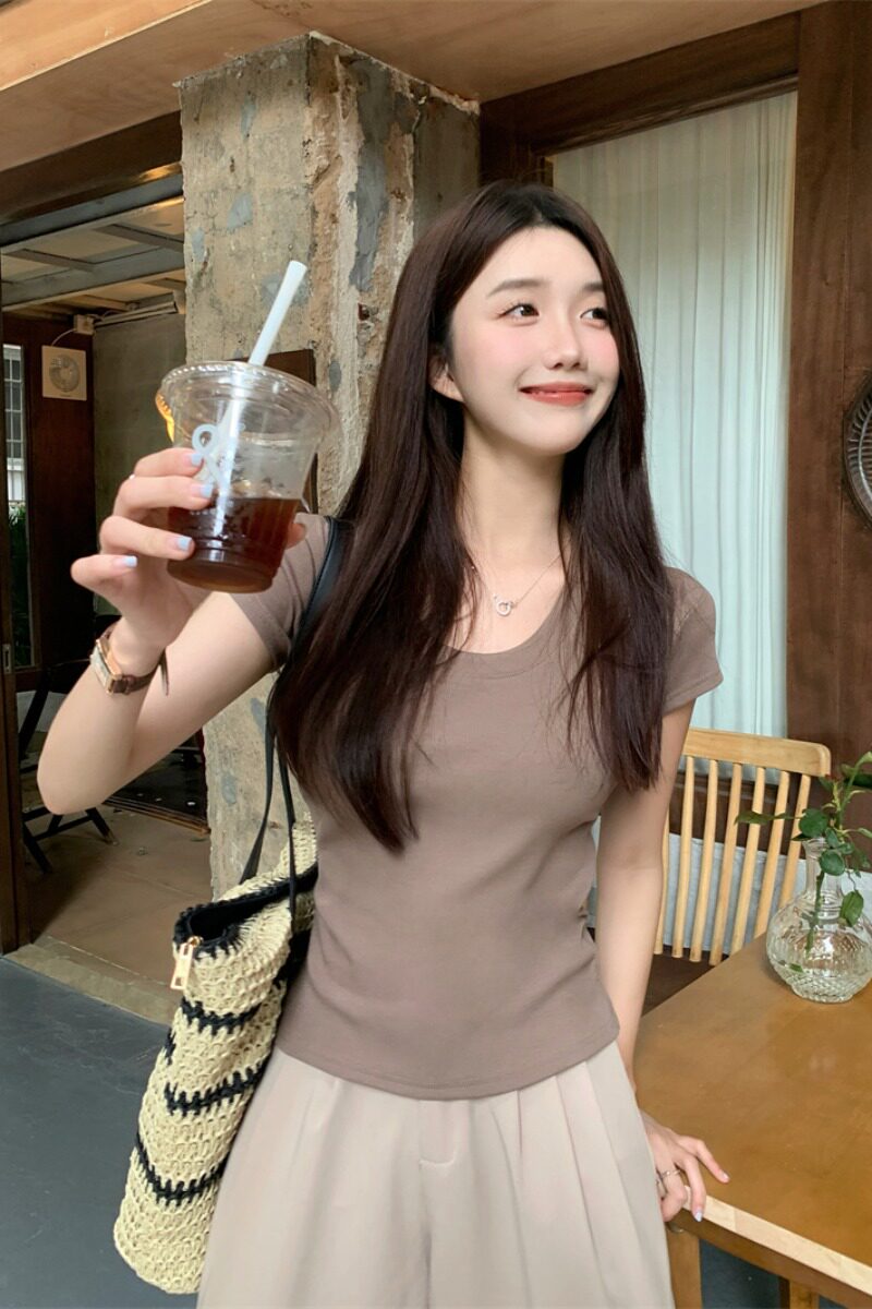 Tide, летняя базовая приятная телу футболка с коротким рукавом, коллекция 2023, городской стиль, яркий броский стиль, по фигуре, облегающий крой
