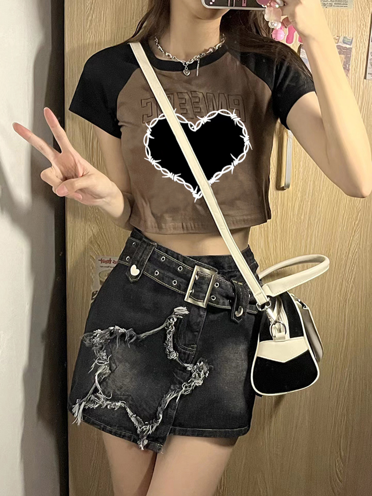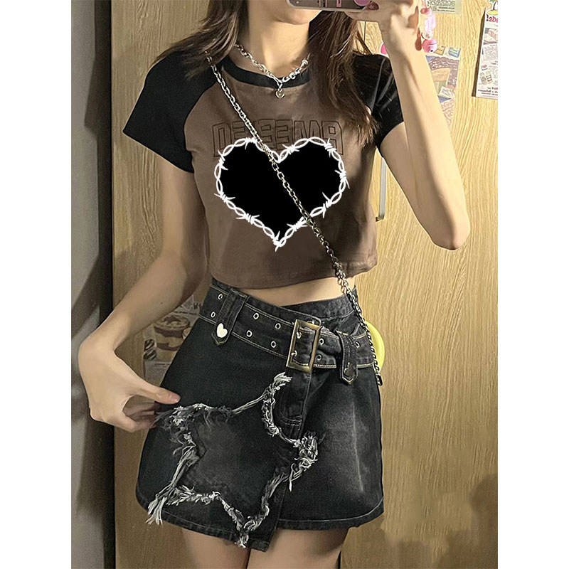 Летняя короткая футболка, в американском стиле, короткий рукав, высокая талия