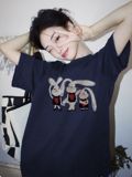 Кролик, летняя брендовая дизайнерская футболка с коротким рукавом с круглым воротником, тренд сезона, свободный крой
