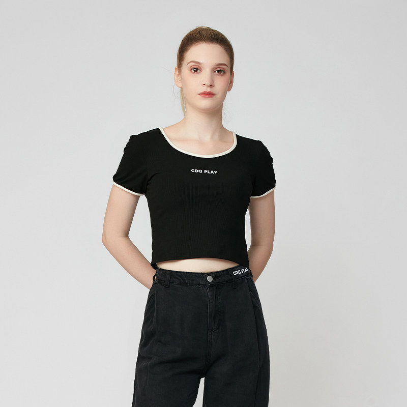 C.d.G.PLAY Приталенная короткая базовая приятная телу футболка с круглым воротником, 2023