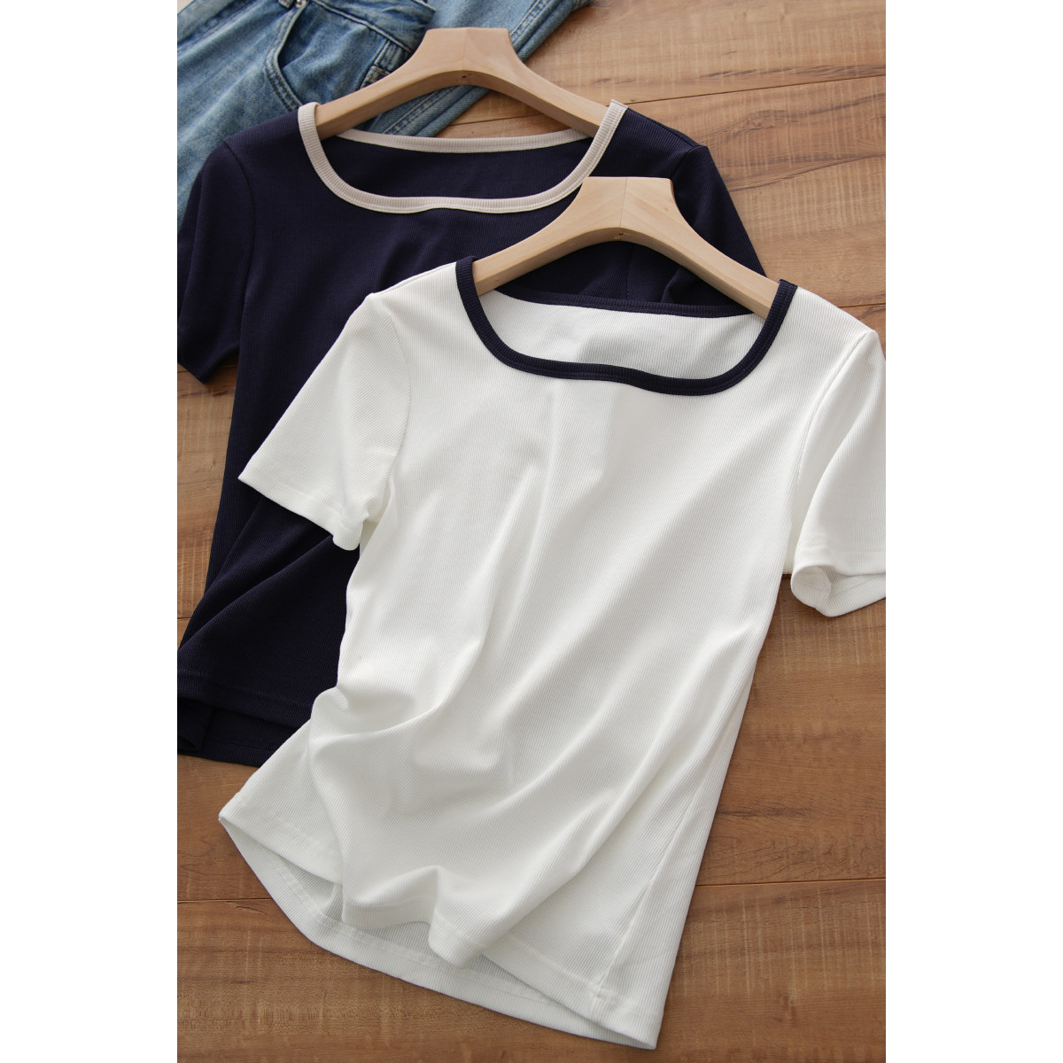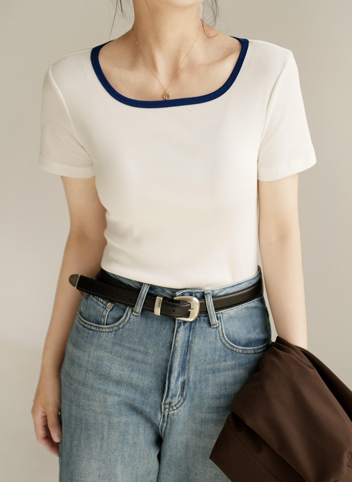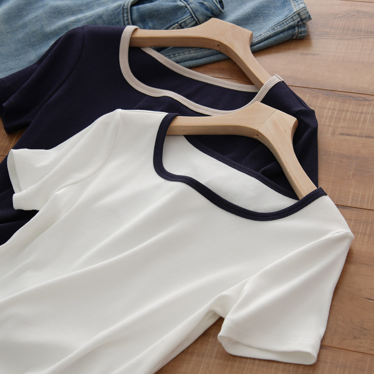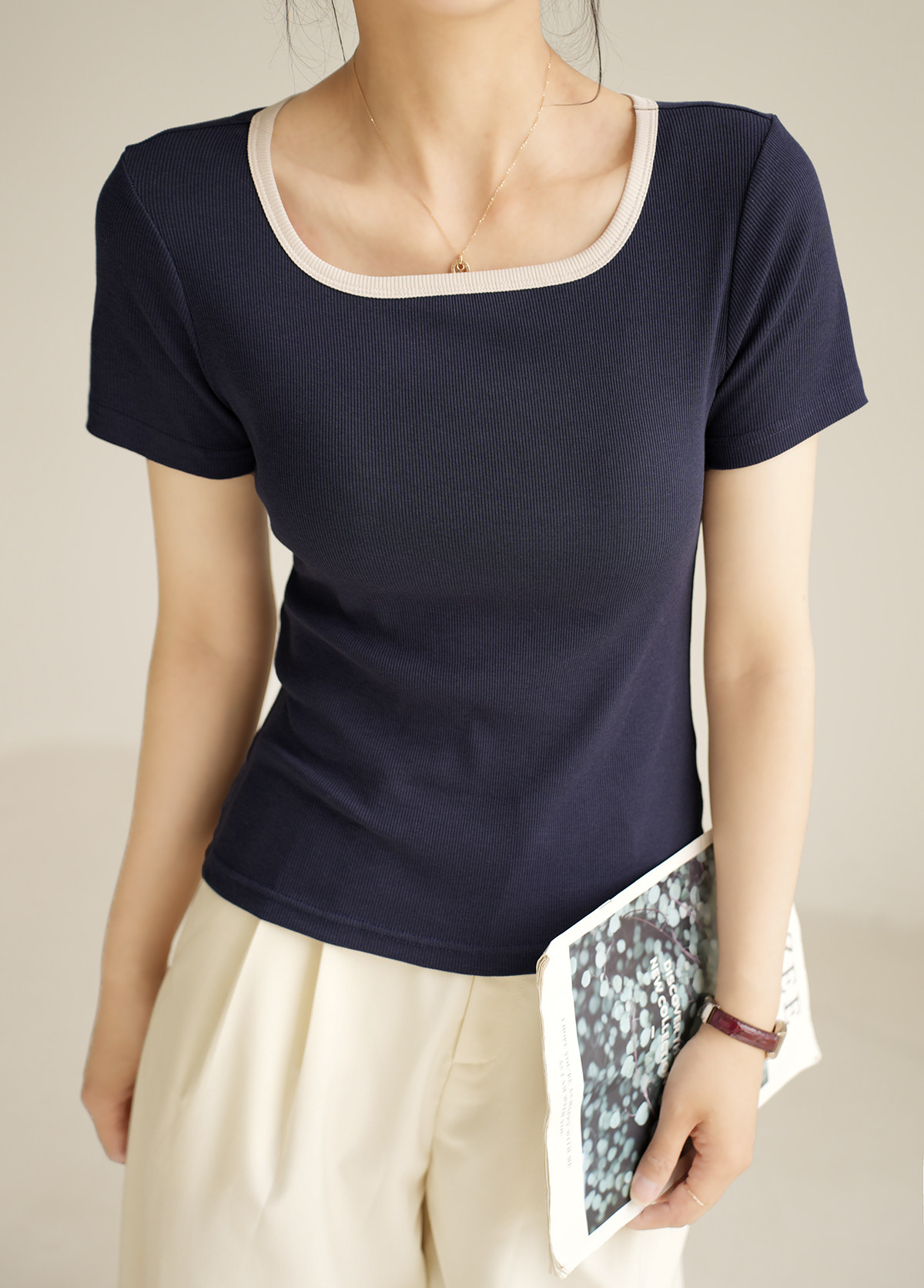 Тонкая приталенная летняя футболка, квадратный вырез, короткий рукав, городской стиль