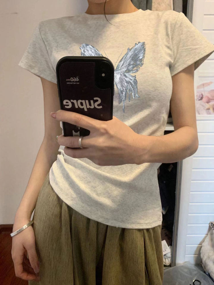 Ретро летняя приталенная короткая футболка, в американском стиле, короткий рукав