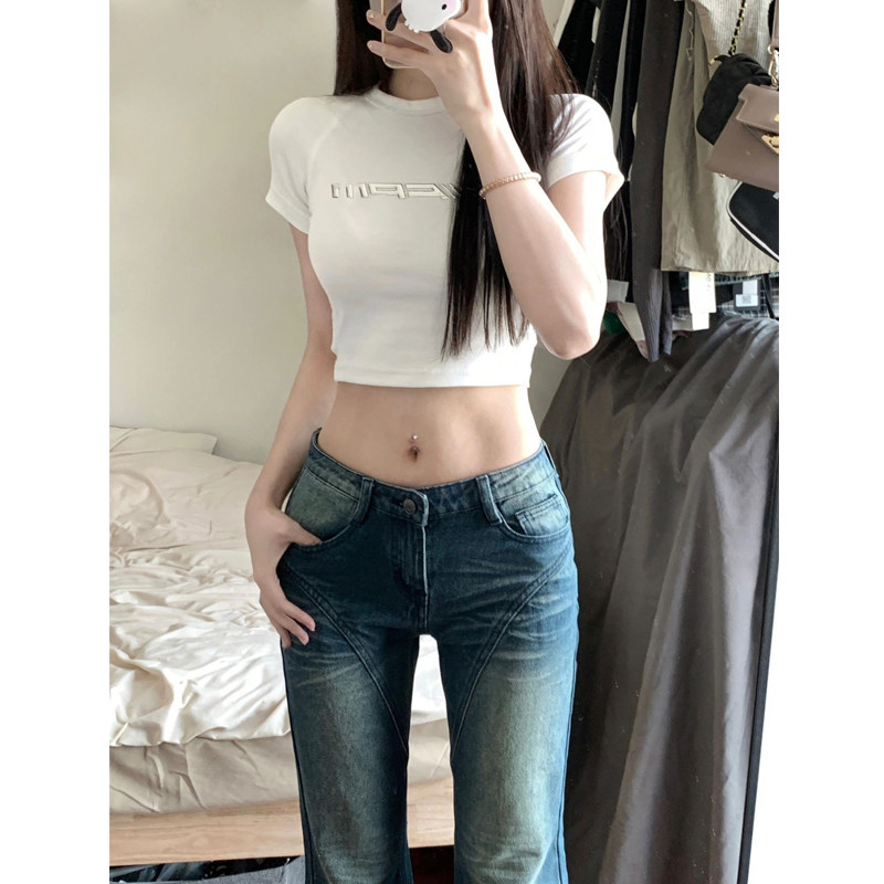 Белая короткая небольшая дизайнерская приталенная футболка, короткий рукав, тренд сезона