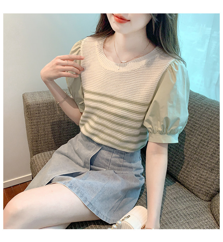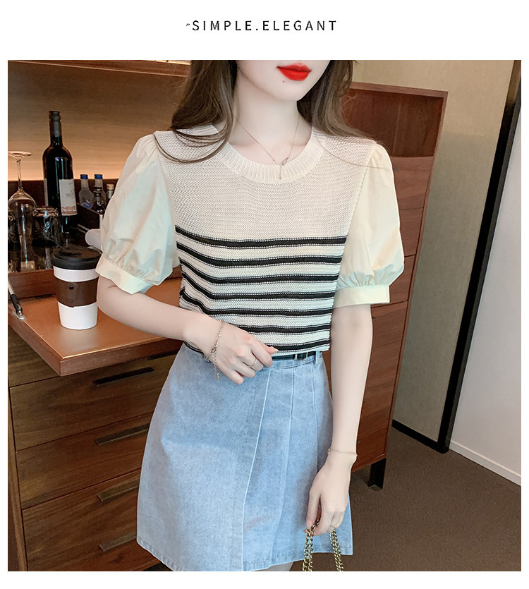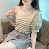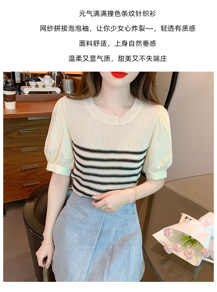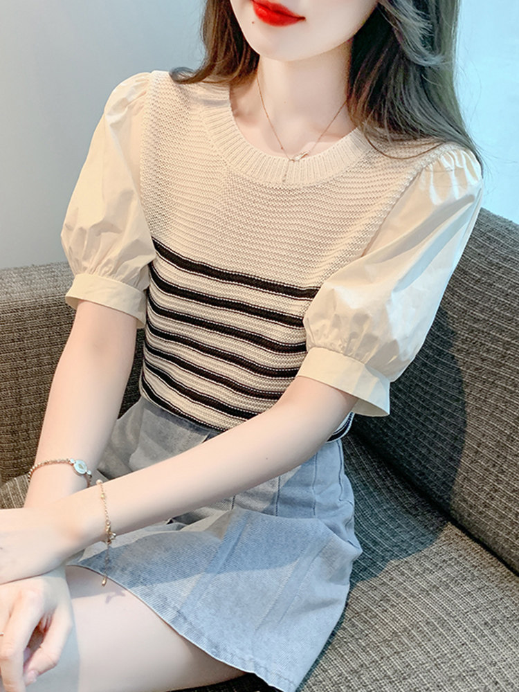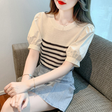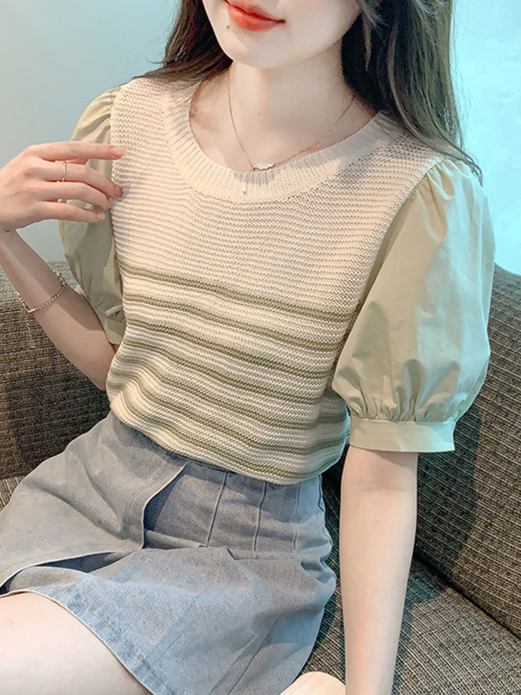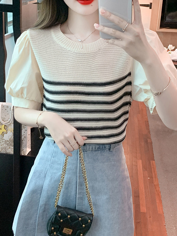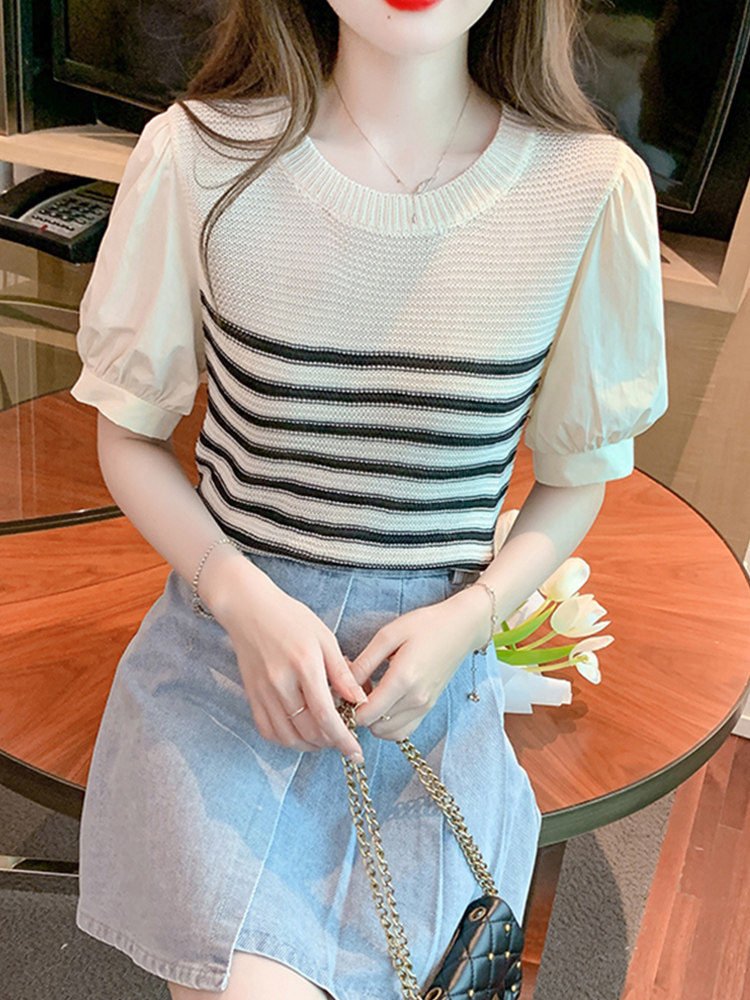 Летняя тонкая шелковая трикотажная футболка с коротким рукавом, коллекция 2023, рукава фонарики