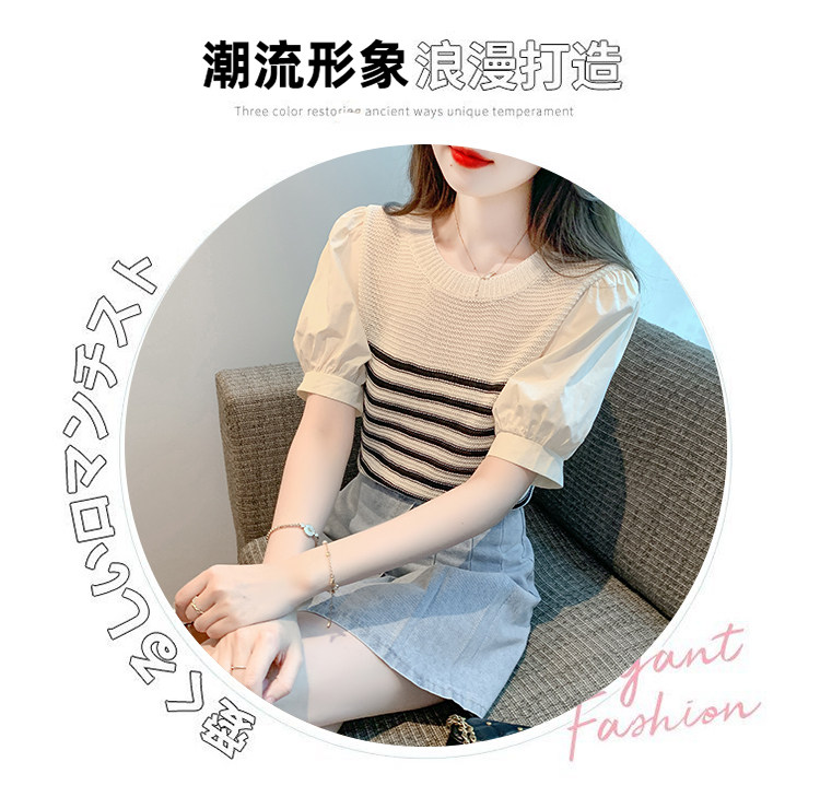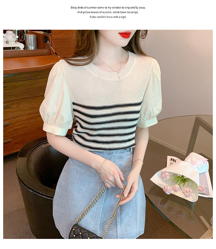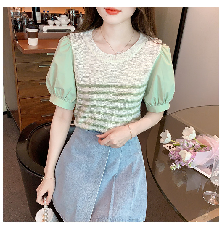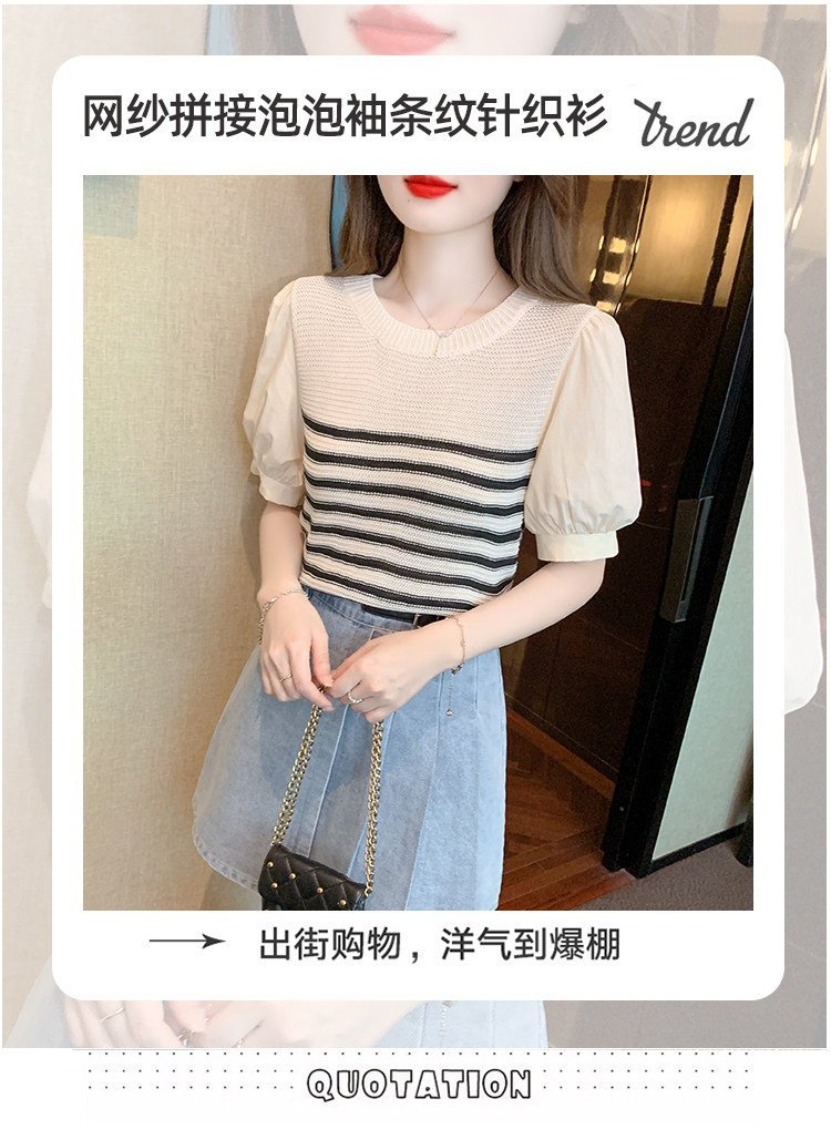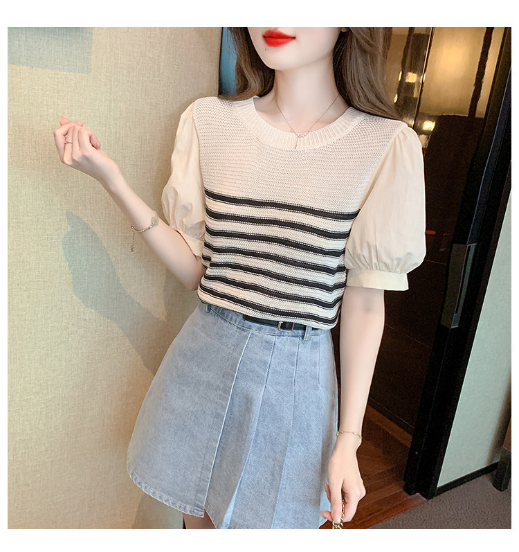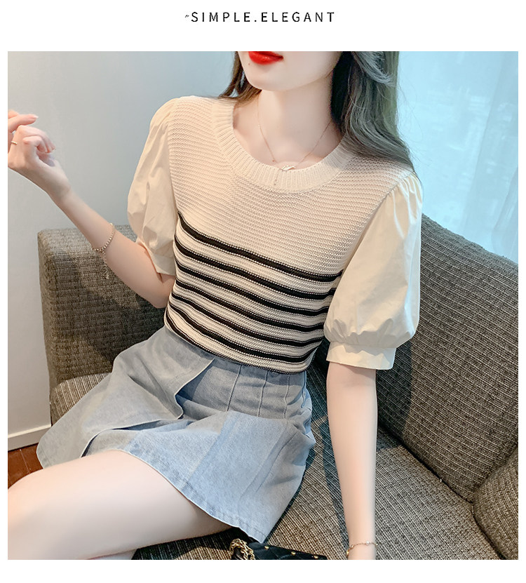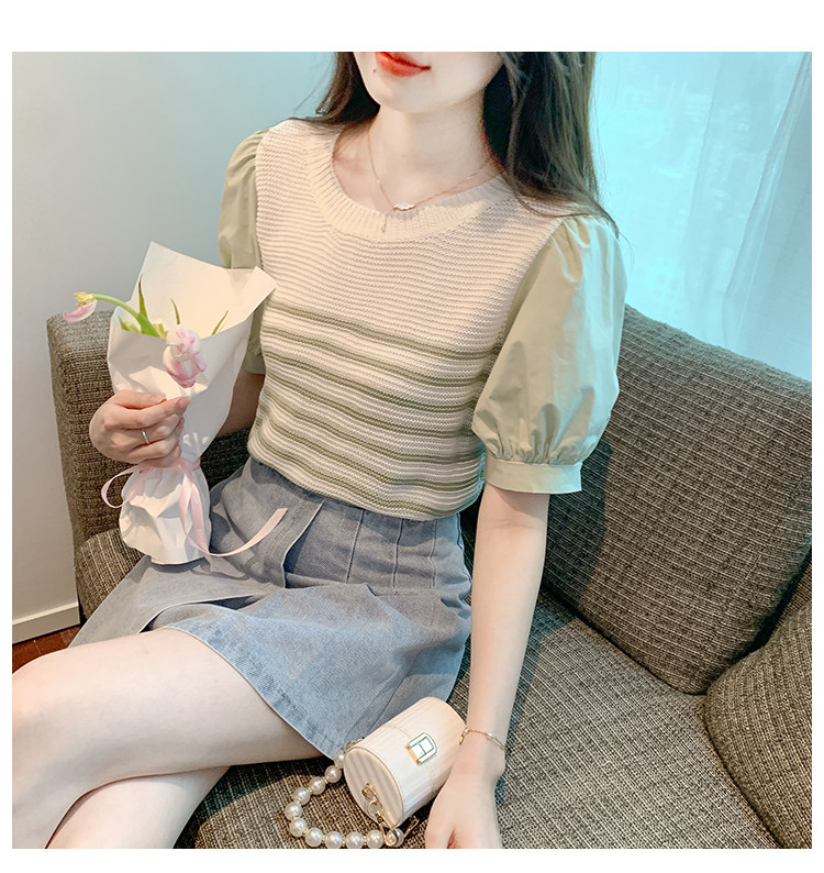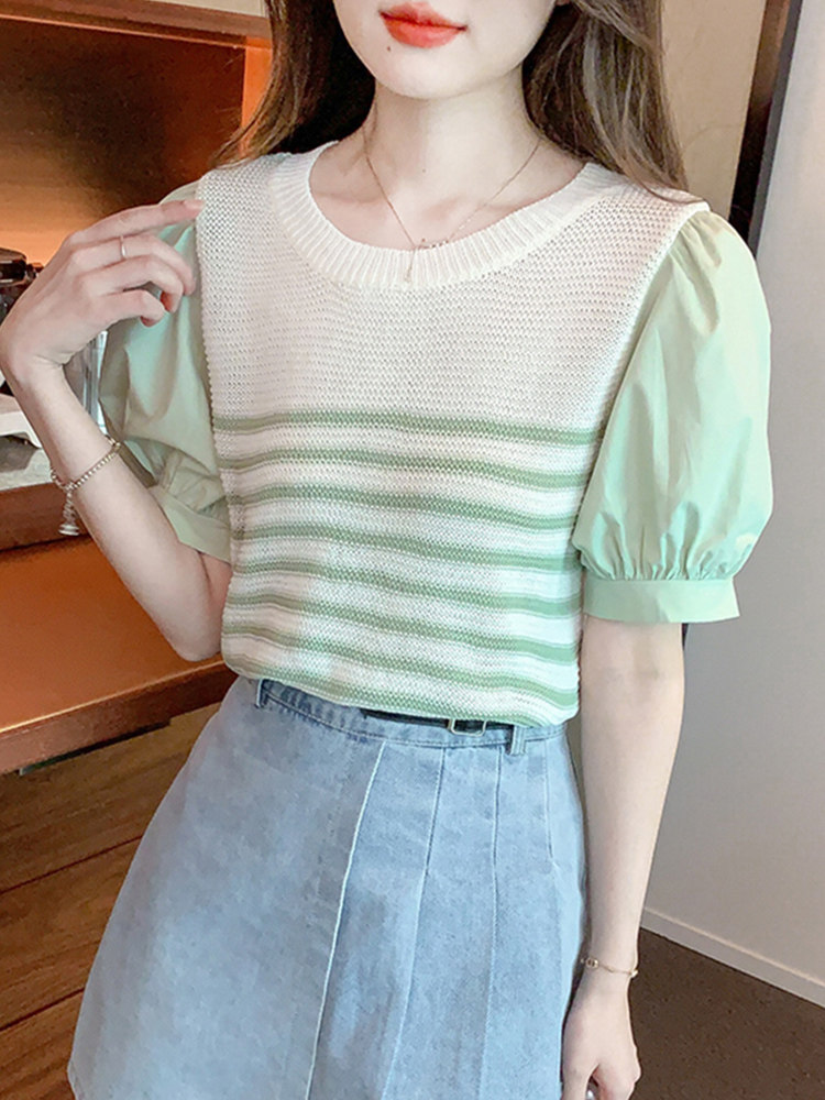 Летняя тонкая шелковая трикотажная футболка с коротким рукавом, коллекция 2023, рукава фонарики