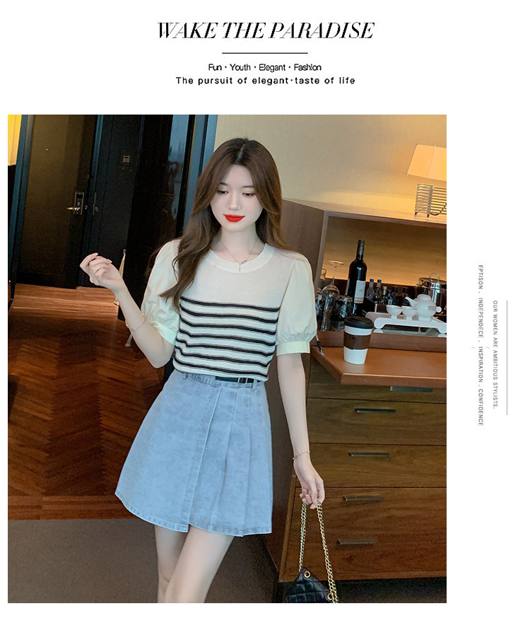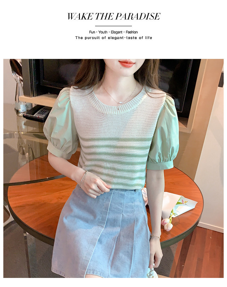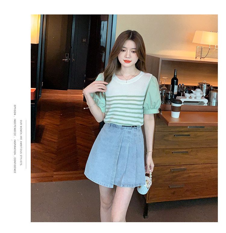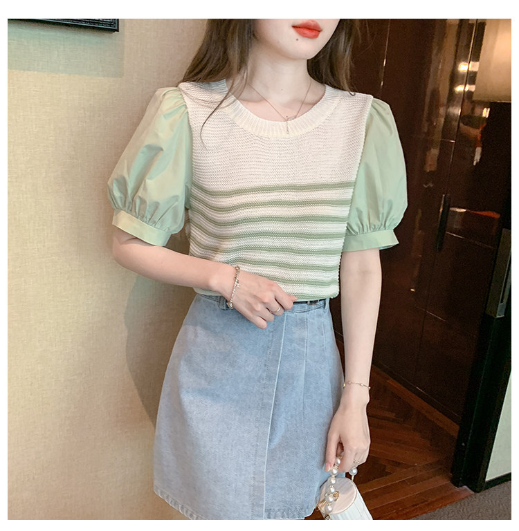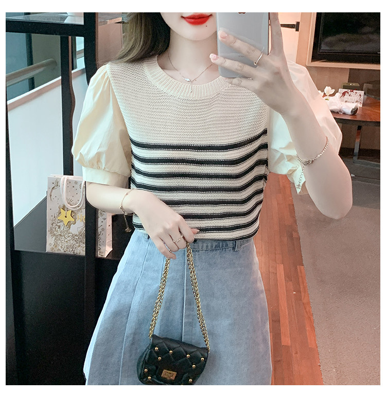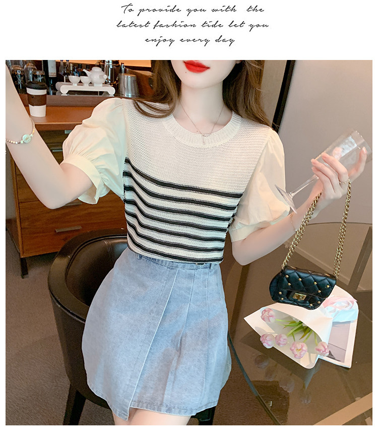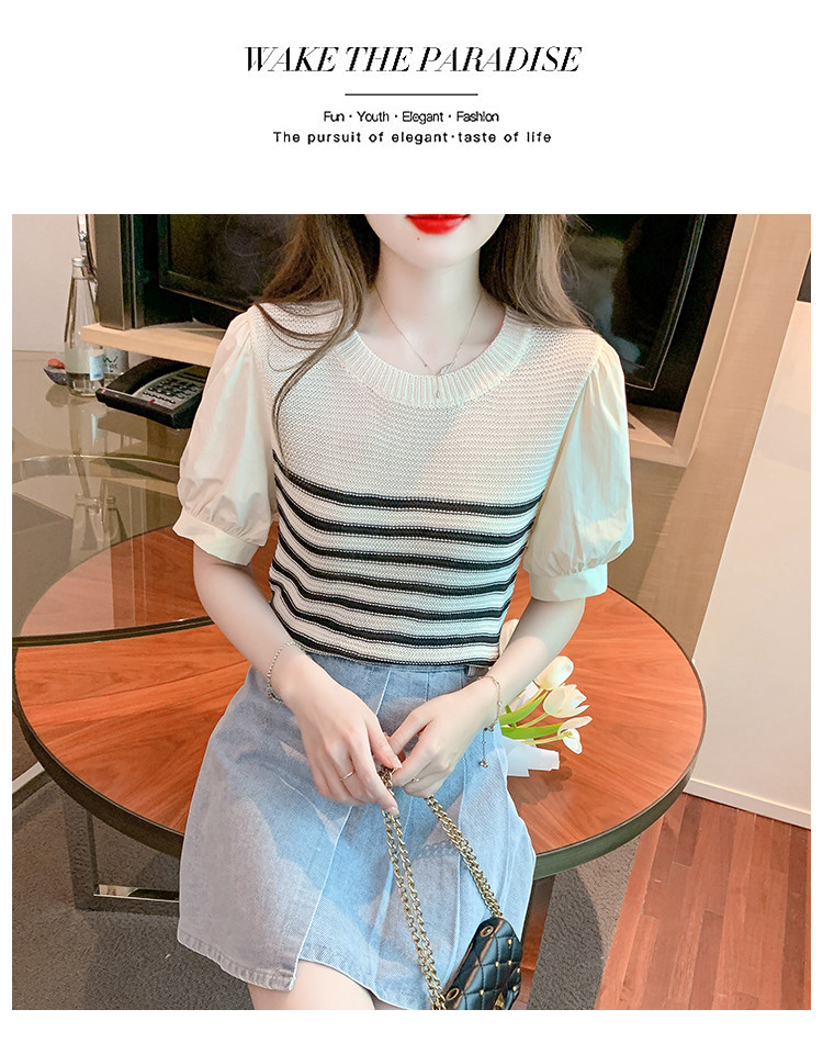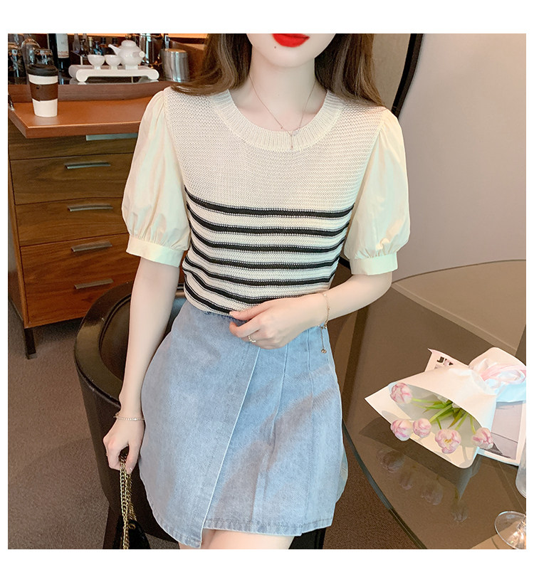 Летняя тонкая шелковая трикотажная футболка с коротким рукавом, коллекция 2023, рукава фонарики