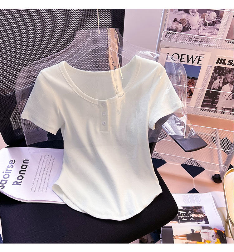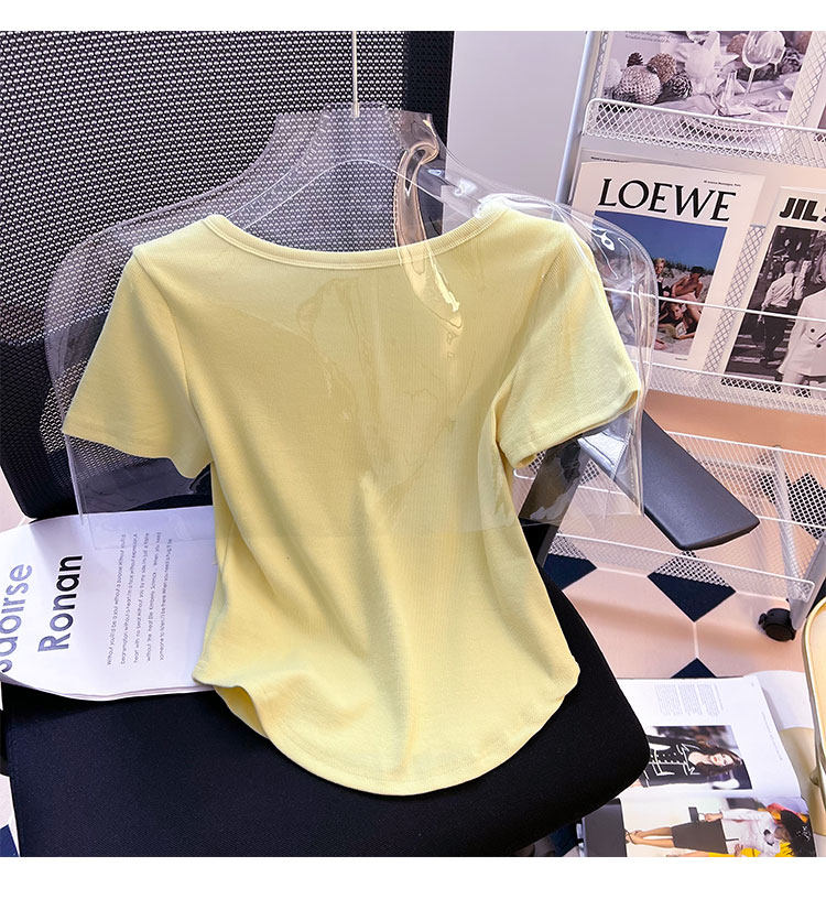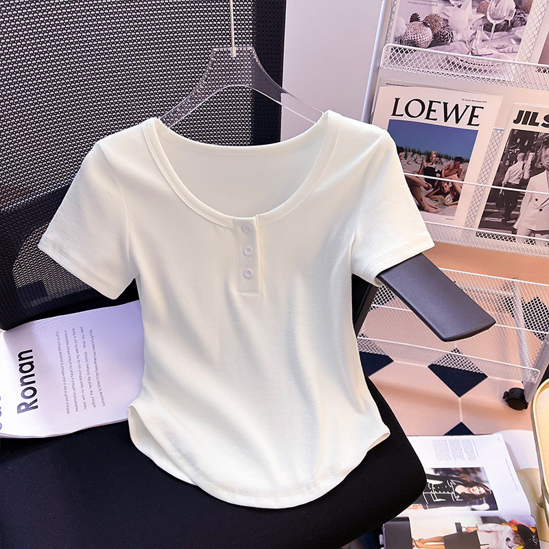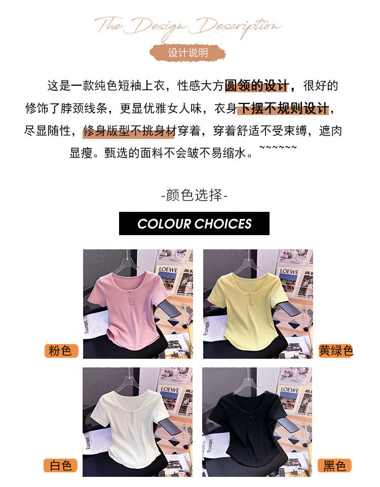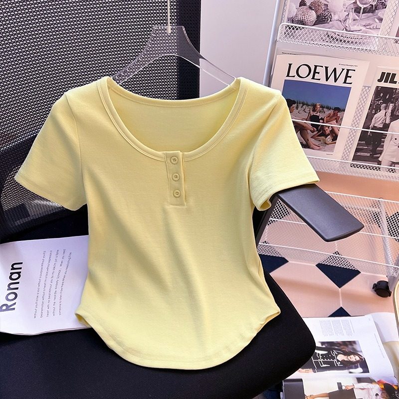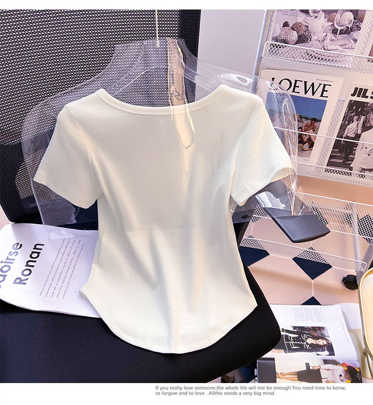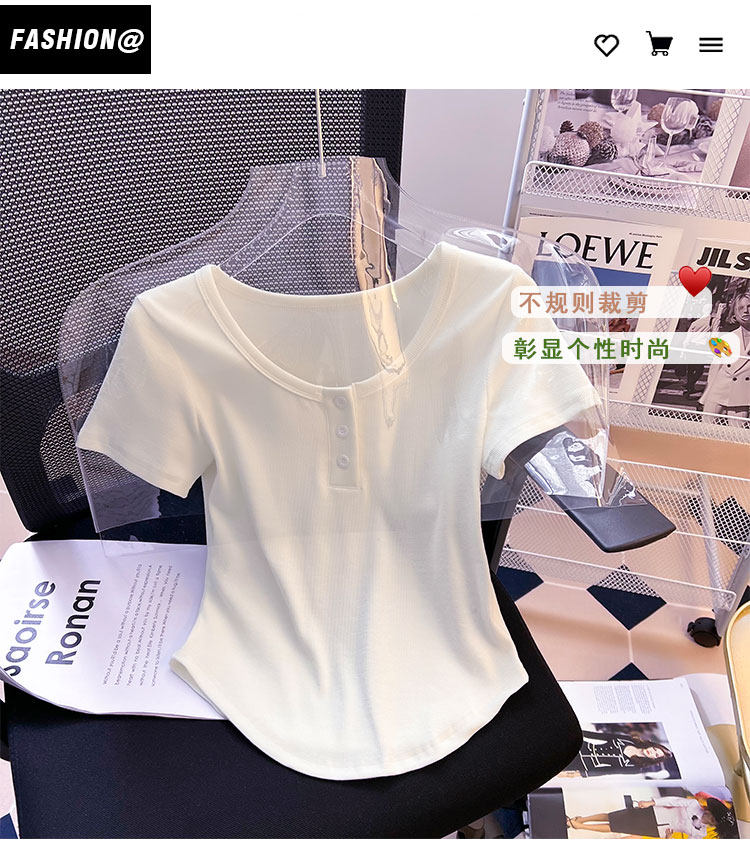 Хлопковая летняя дизайнерская изогнутая короткая футболка с коротким рукавом, 2024 года, тренд сезона
