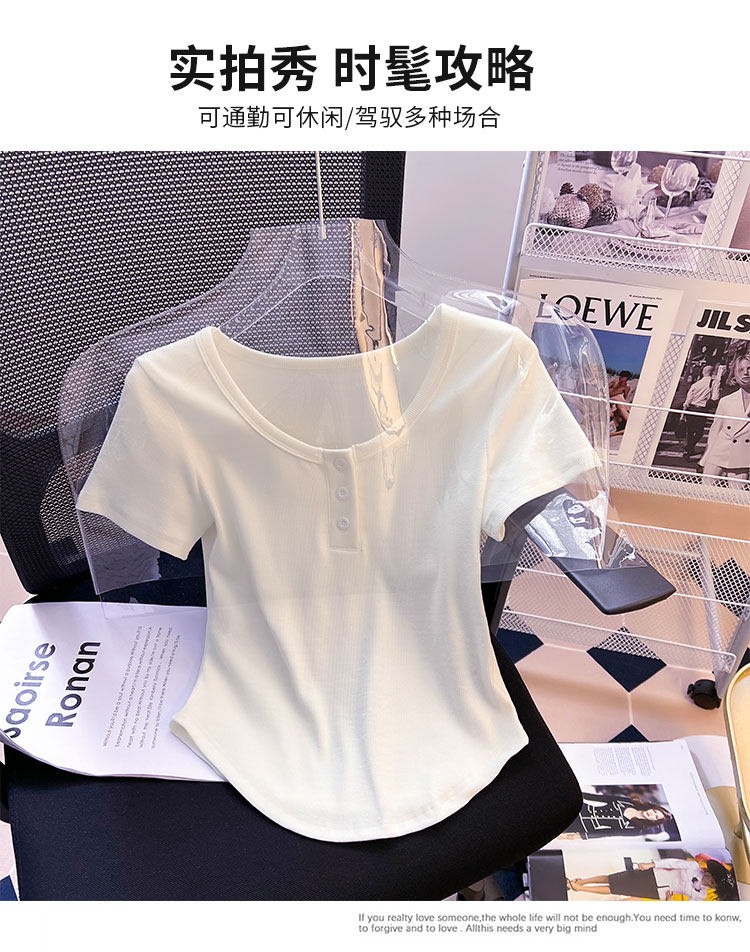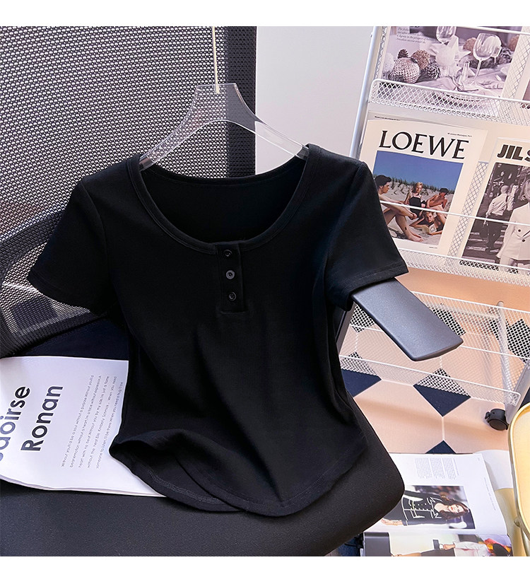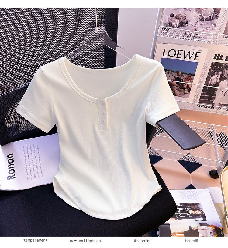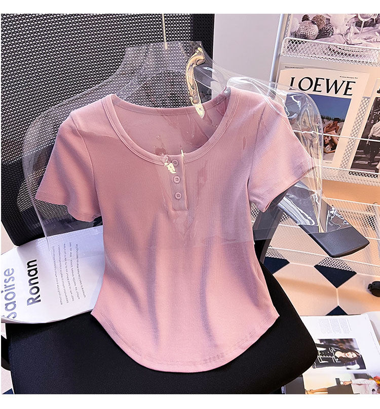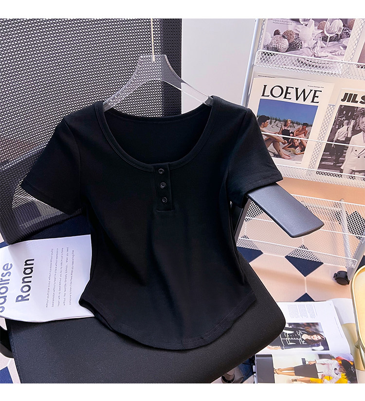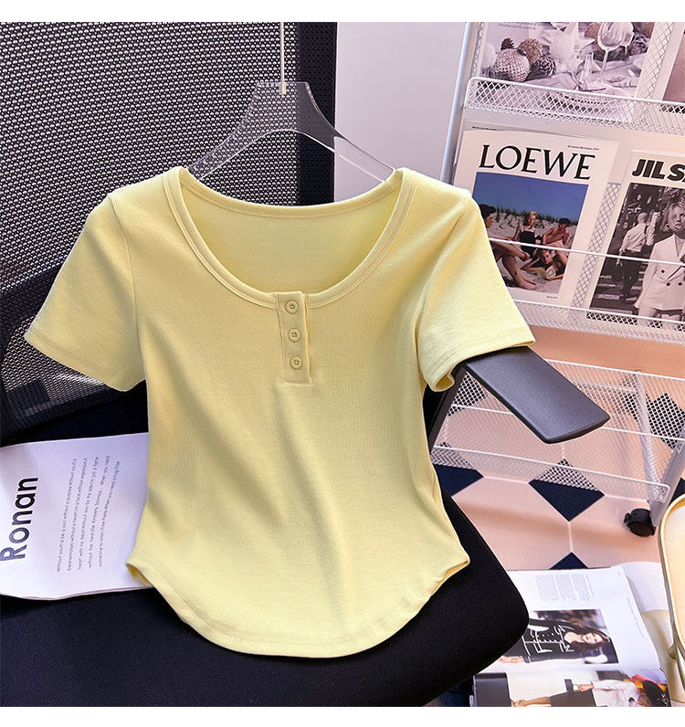 Хлопковая летняя дизайнерская изогнутая короткая футболка с коротким рукавом, 2024 года, тренд сезона