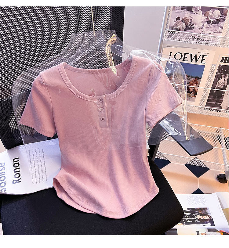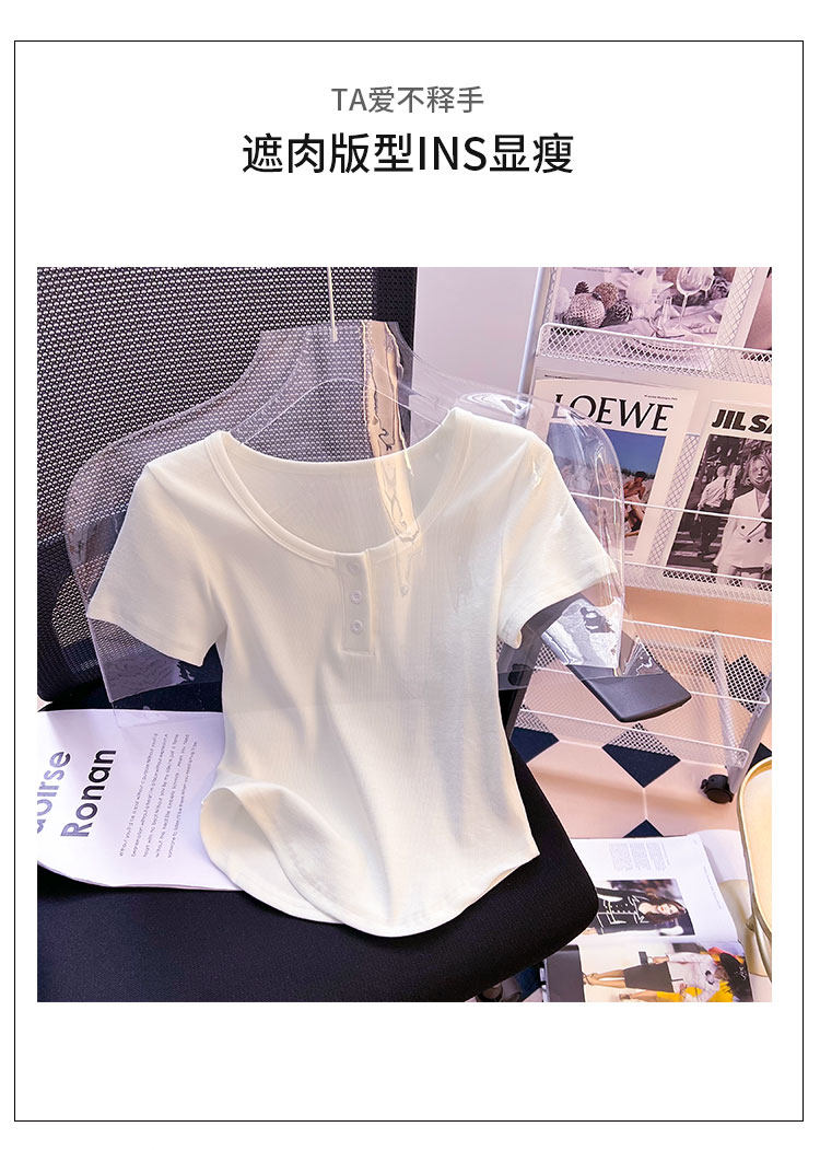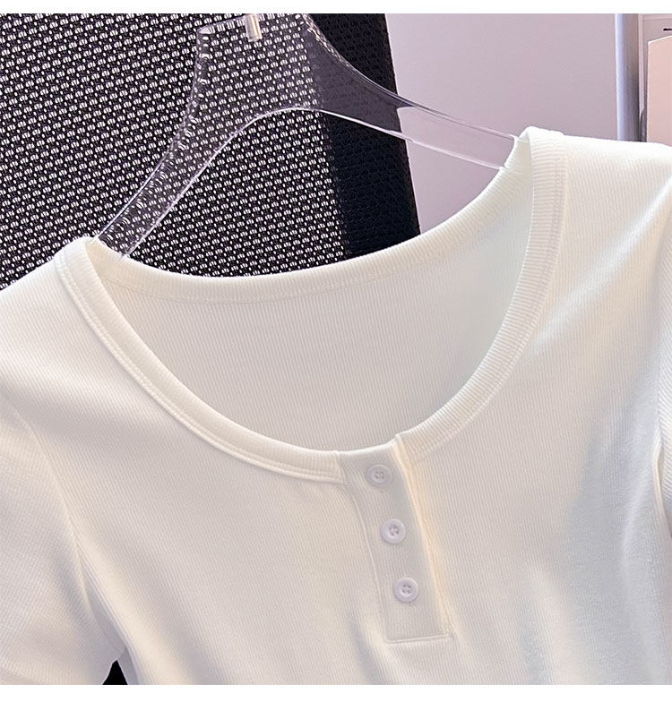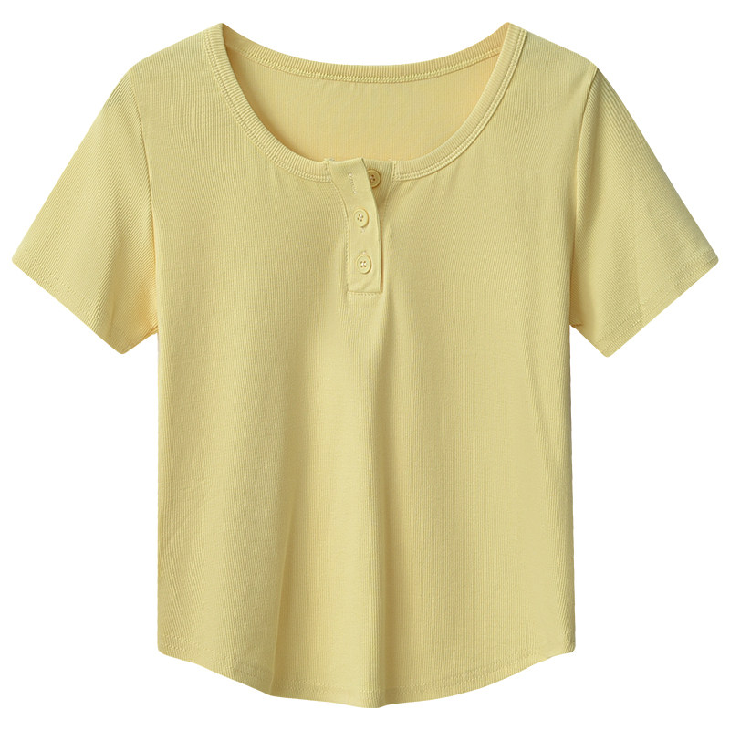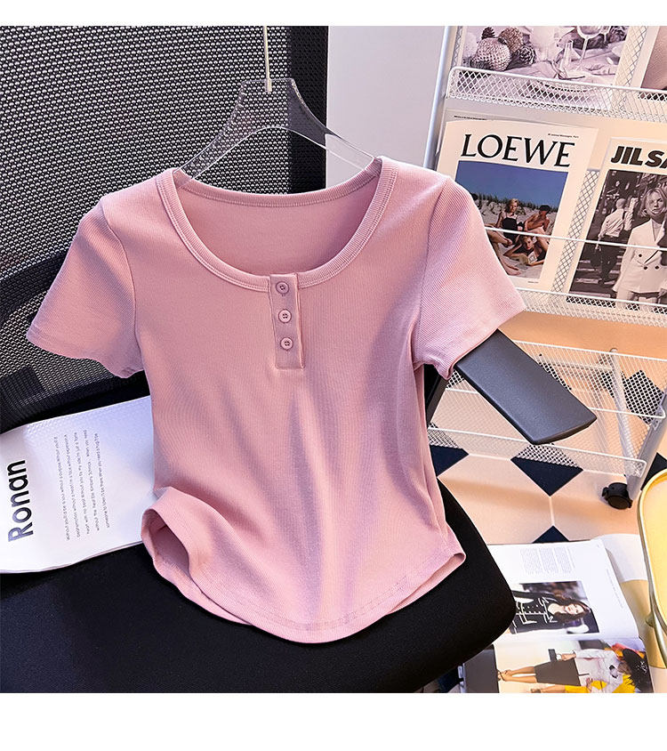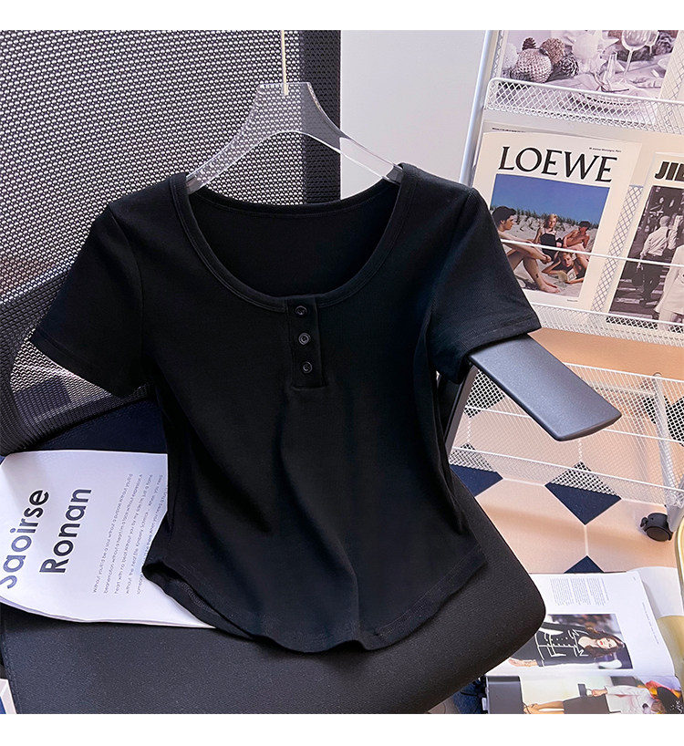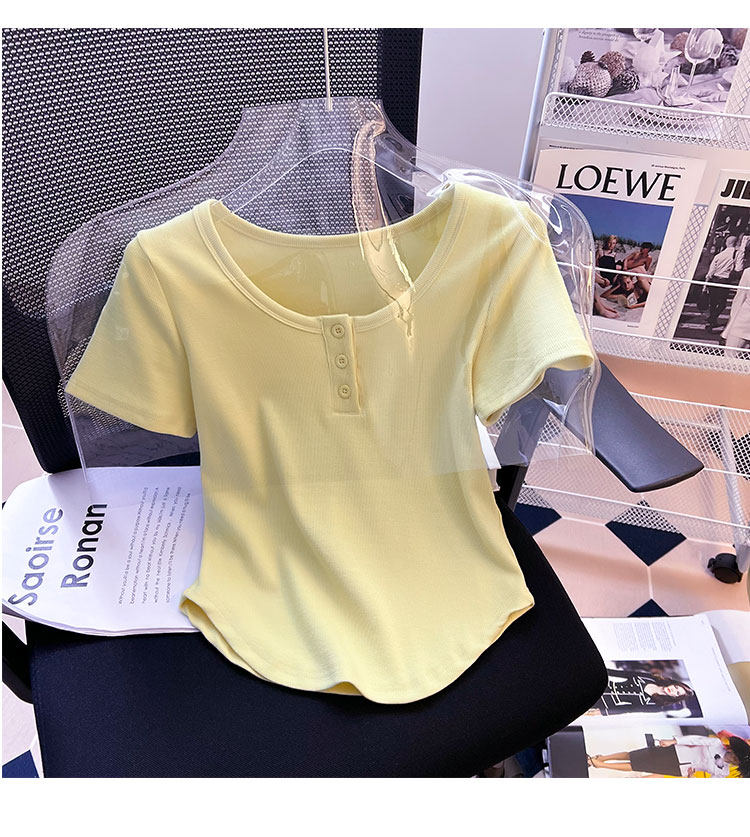 Хлопковая летняя дизайнерская изогнутая короткая футболка с коротким рукавом, 2024 года, тренд сезона