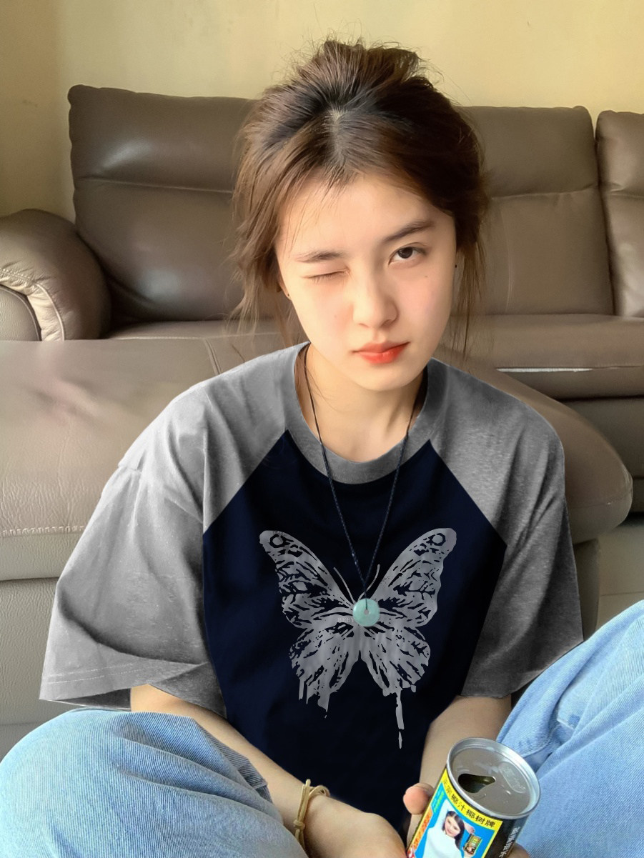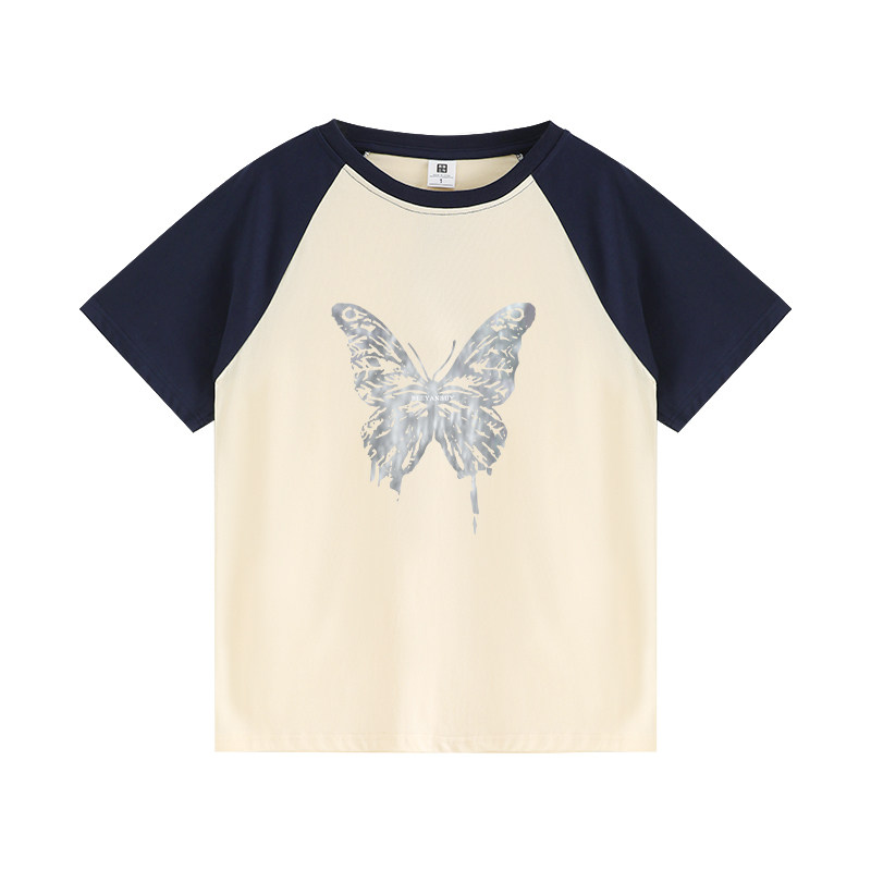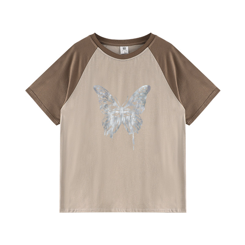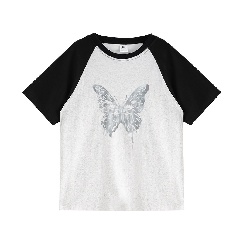 Летняя небольшая дизайнерская ретро футболка, короткий рукав, тренд сезона, в американском стиле