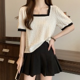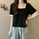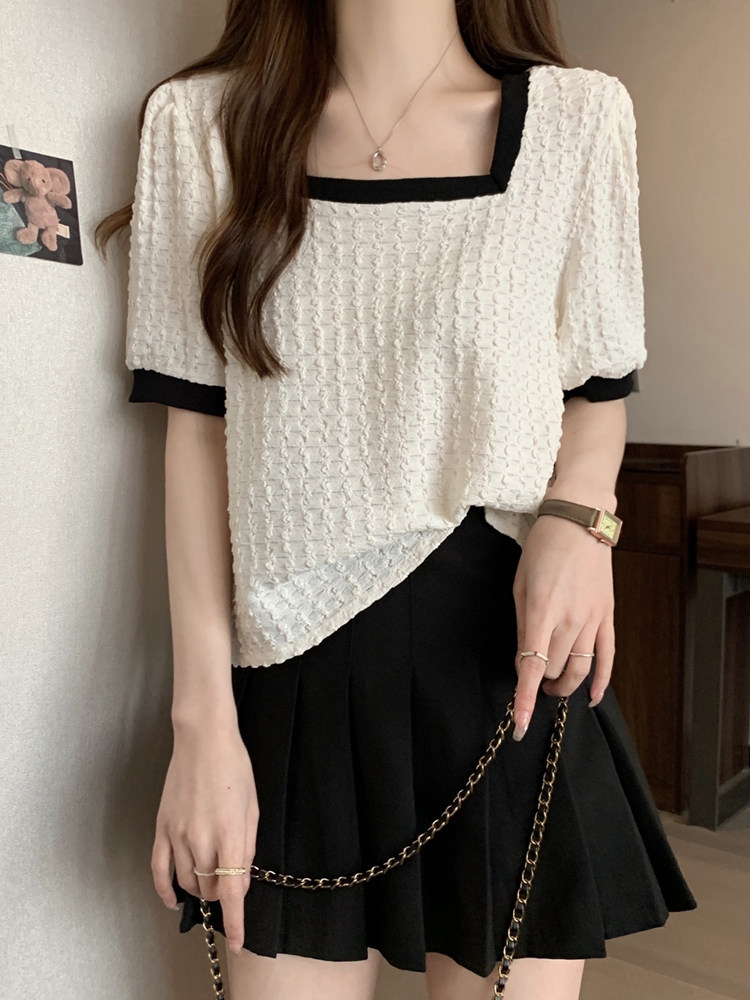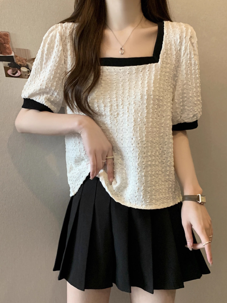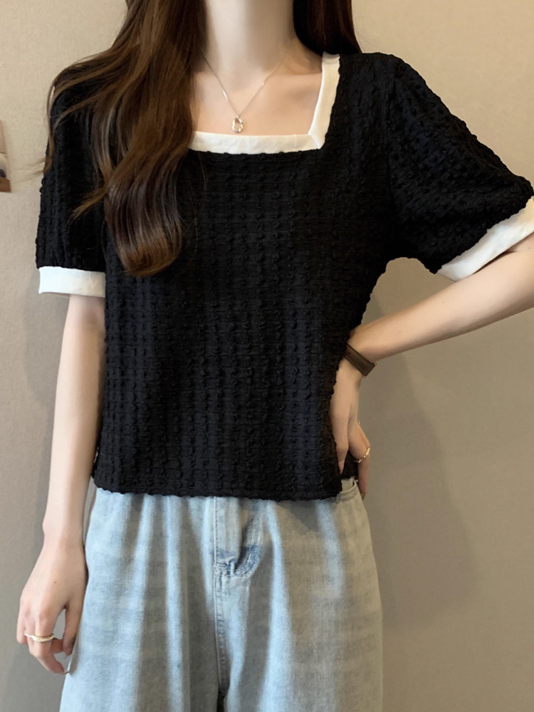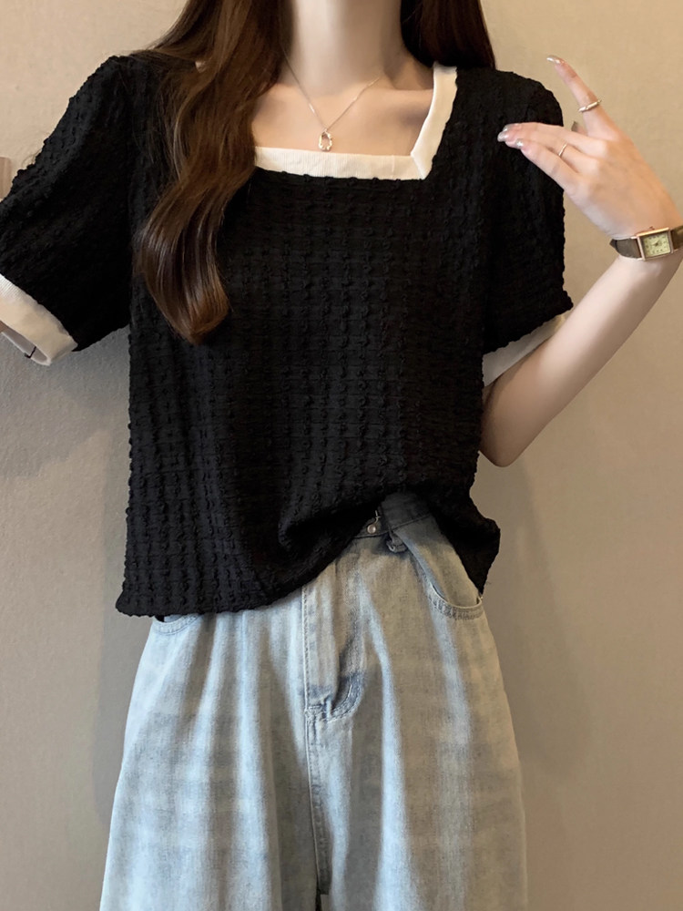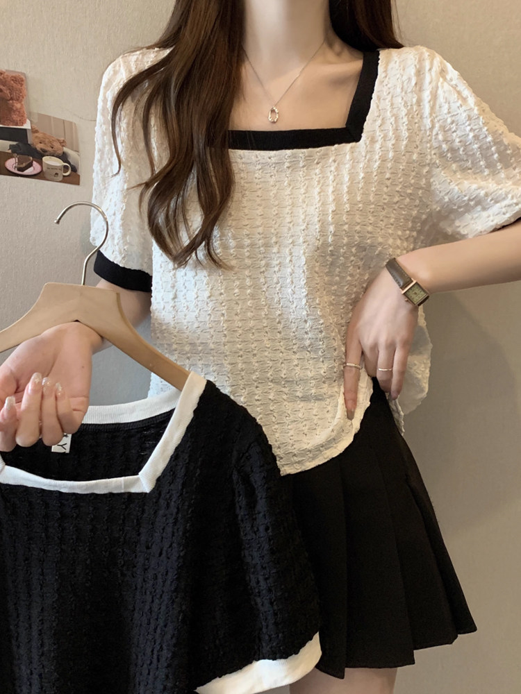 Летняя футболка, большой размер, французский стиль, короткий рукав, квадратный вырез