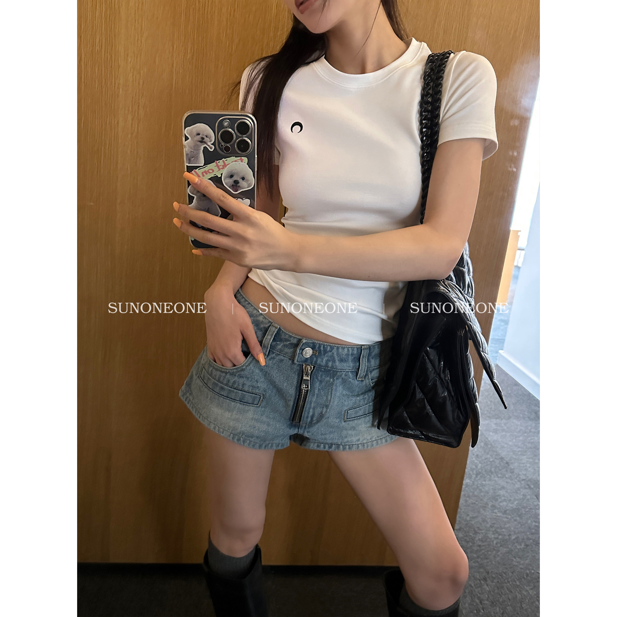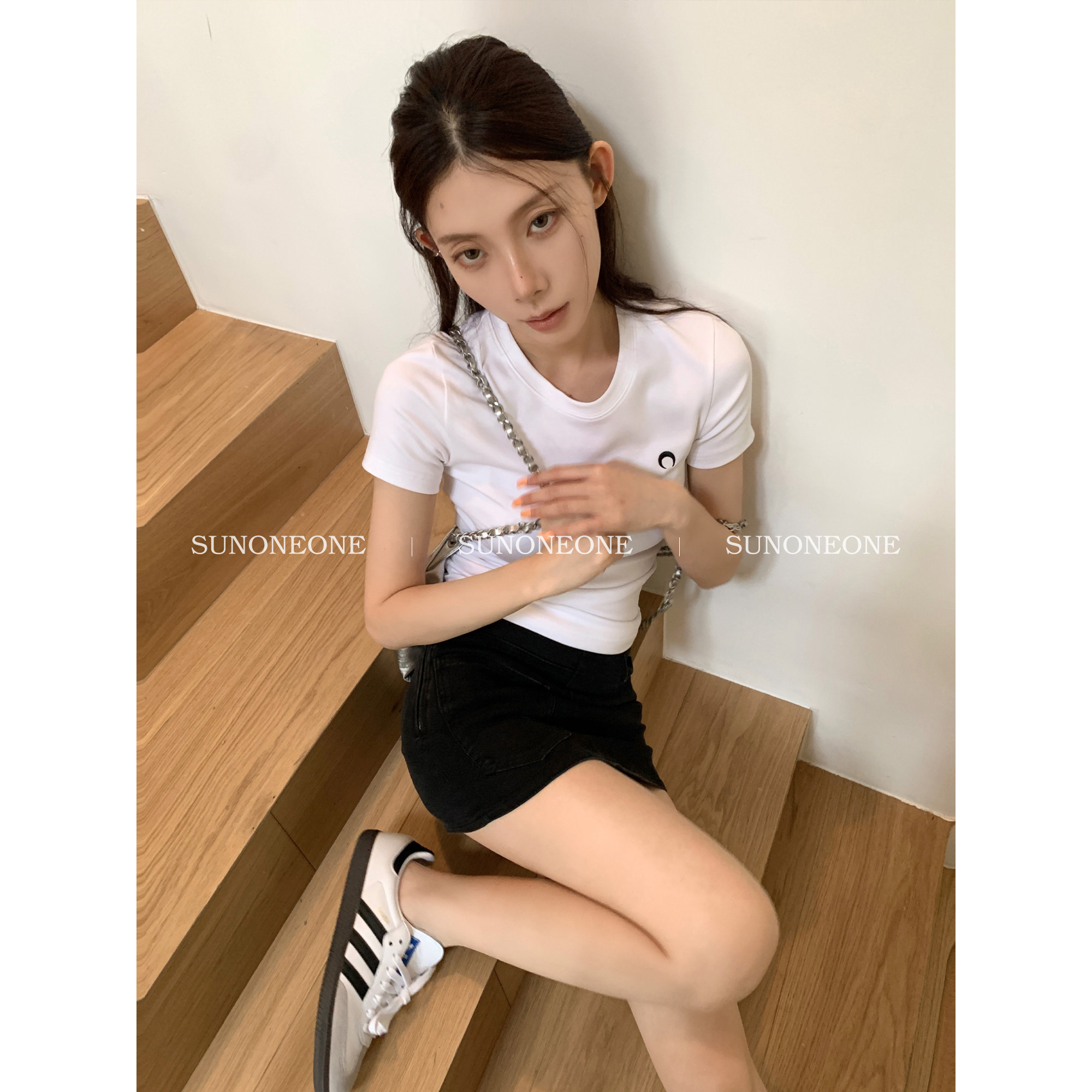 SUNONEONE Белая тонкая приталенная футболка с круглым воротником, с вышивкой, в американском стиле, короткий рукав