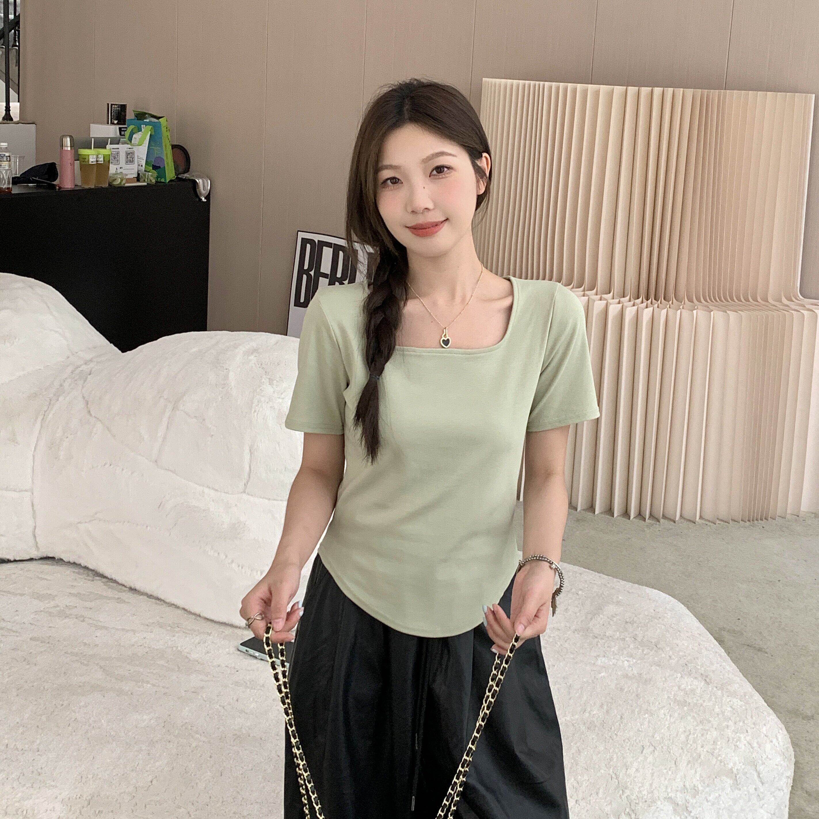 Милая летняя футболка, размер, по фигуре, квадратный вырез